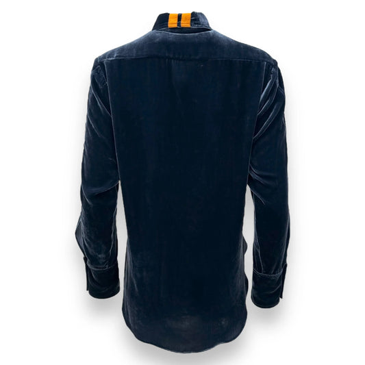 SERENA BUTE STRIPE-APPLIEUÉ VELVET SHIRT BLUE / ORANGE XS