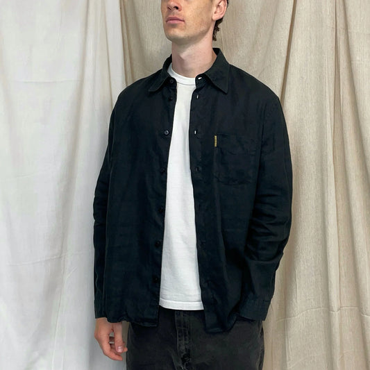 Armani Jeans Black 00s Linen Button-Through Shirt