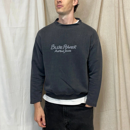 Armani Jeans Grey 1990s 'Blue Power' Cotton Wide-Neck Sweatshirt