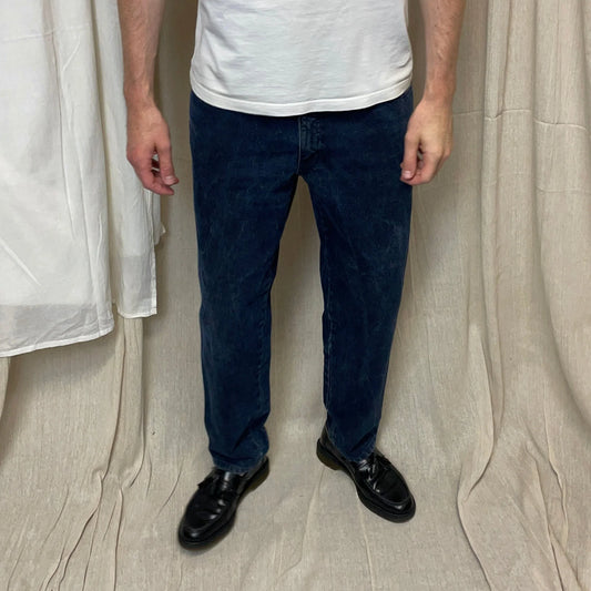 Armani Jeans Dark Blue 1990s Silver Logo Barrel Leg Denim Jeans