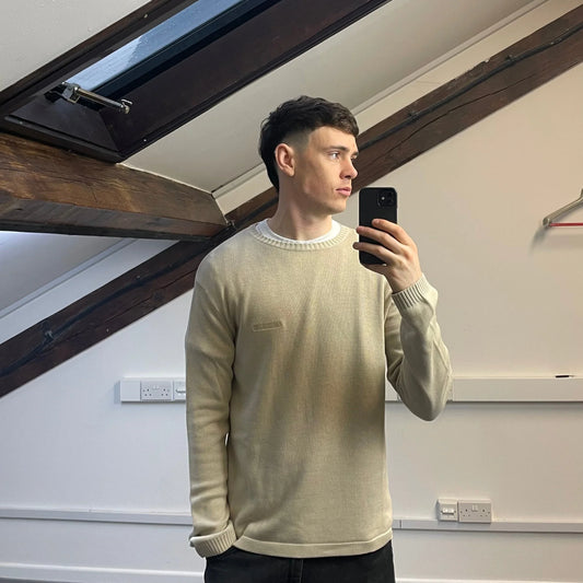 Armani Jeans Beige Lightweight Crewneck Knit Jumper