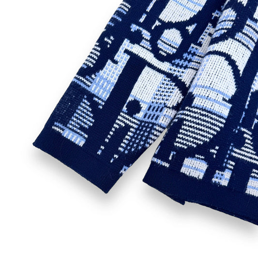 DIOR OBLIQUE MONOGRAM HIGH NECK KNITTED WOOL SWEATER BLUE / NAVY M