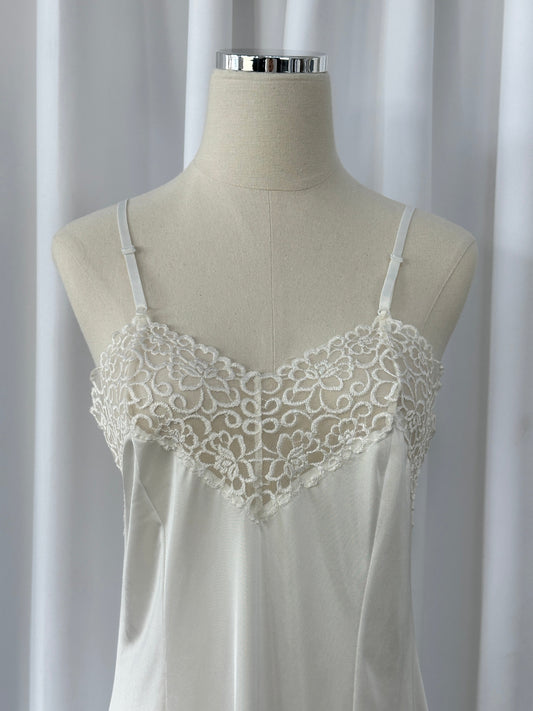 Vintage 1980s Lace Semi Sheer Slip Dress - M