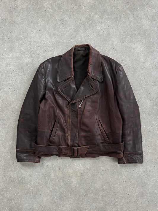 Vintage 1980s Distressed Leather Biker Jacket - L/XL