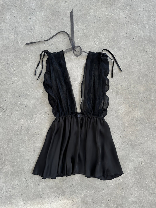 Vintage 2000s Lace Sheer Babydoll Satin Top - M