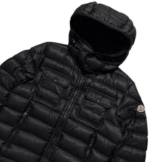 Moncler Black Poly Logo Patch Feather Down Puffer Jacket