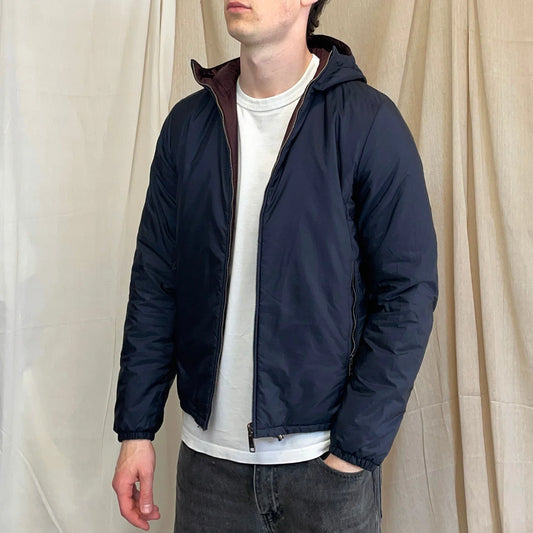 Prada Sport Navy & Burgundy 2018 Nylon Reversible Padded Hooded Jacket