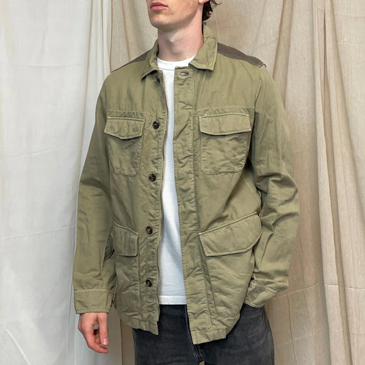 Prada Sport Khaki 00s Mixed Linen & Leather Multi-Pocket Field Jacket