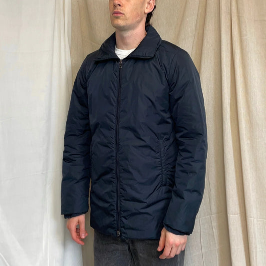 Prada Sport Navy 00s Nylon Padded Concealed Hood Longline Overcoat