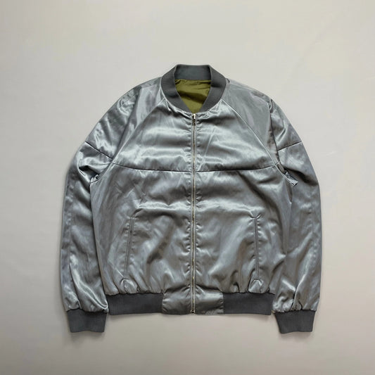 Prada Silver/Khaki Reversible 2010 Nylon Lightweight Bomber Jacket
