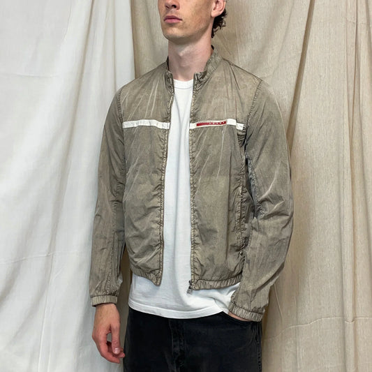false Verkoper:ajpg_shopPrada Sport Dusty Brown 00s Linea Rossa Nylon Lightweight Racing Biker Jacket
