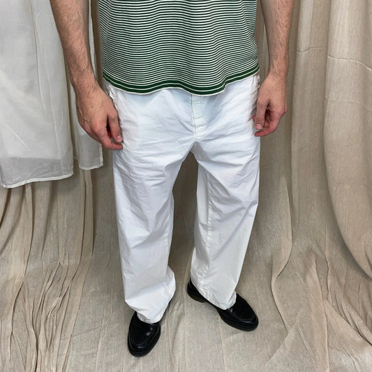 Prada Sport White SS99 Wide Leg Cotton Trousers