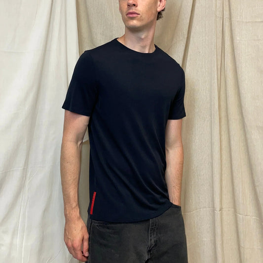 Prada Sport Navy 00s Canvas Textured Zip-Shoulder T-Shirt