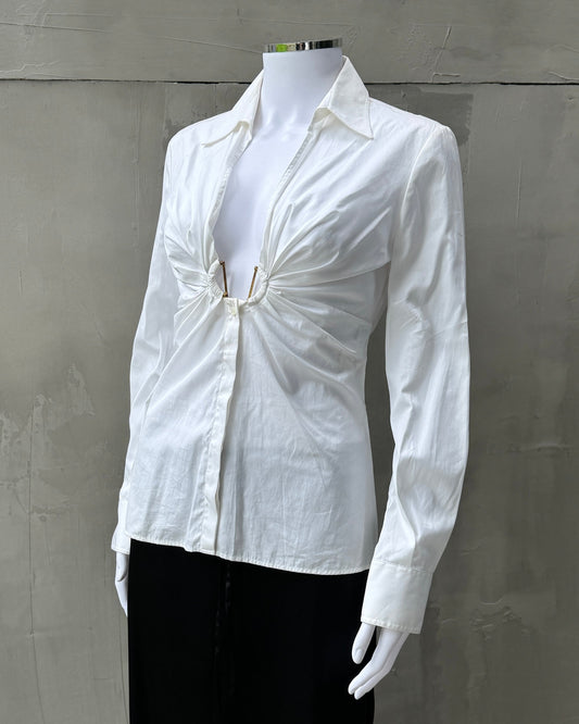 ROBERTO CAVALLI AW07 RUCHED PLUNGING NECKLINE WHITE SHIRT - M