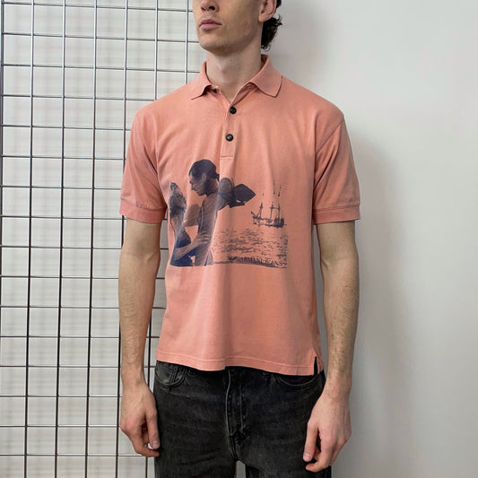Armani Jeans Pink 90s Nautical Graphic Print Cotton Polo Shirt