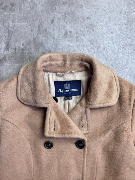 Aquascutum Tan Camel Wool Double Breasted Overcoat