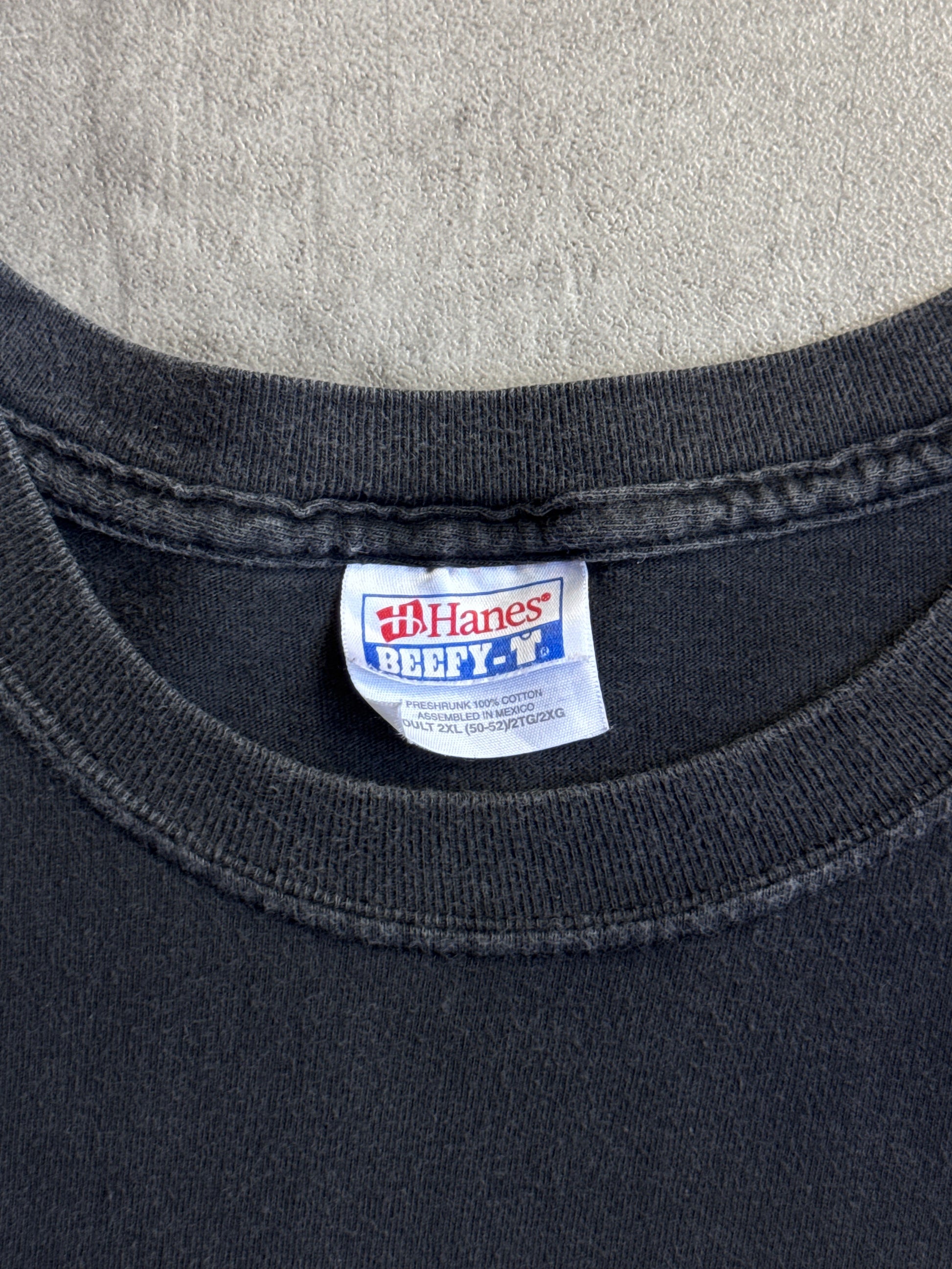 Printed on a black cotton base, the tee features the instantly recognisable Bada Bing logo graphic, capturing the crossover between television fandom and early-2000s streetwear. A highly collectible piece for fans of the series and vintage pop-culture memorabilia.