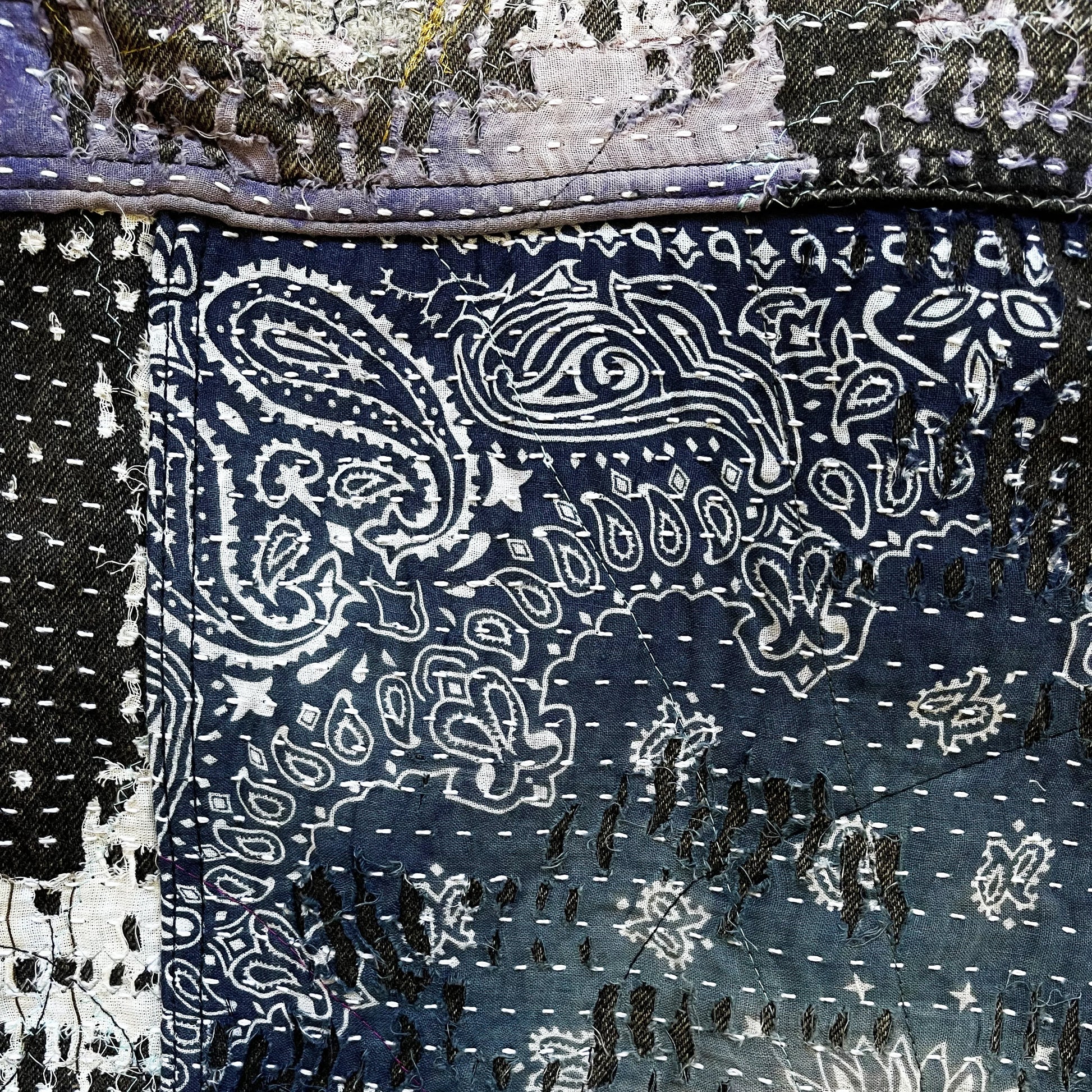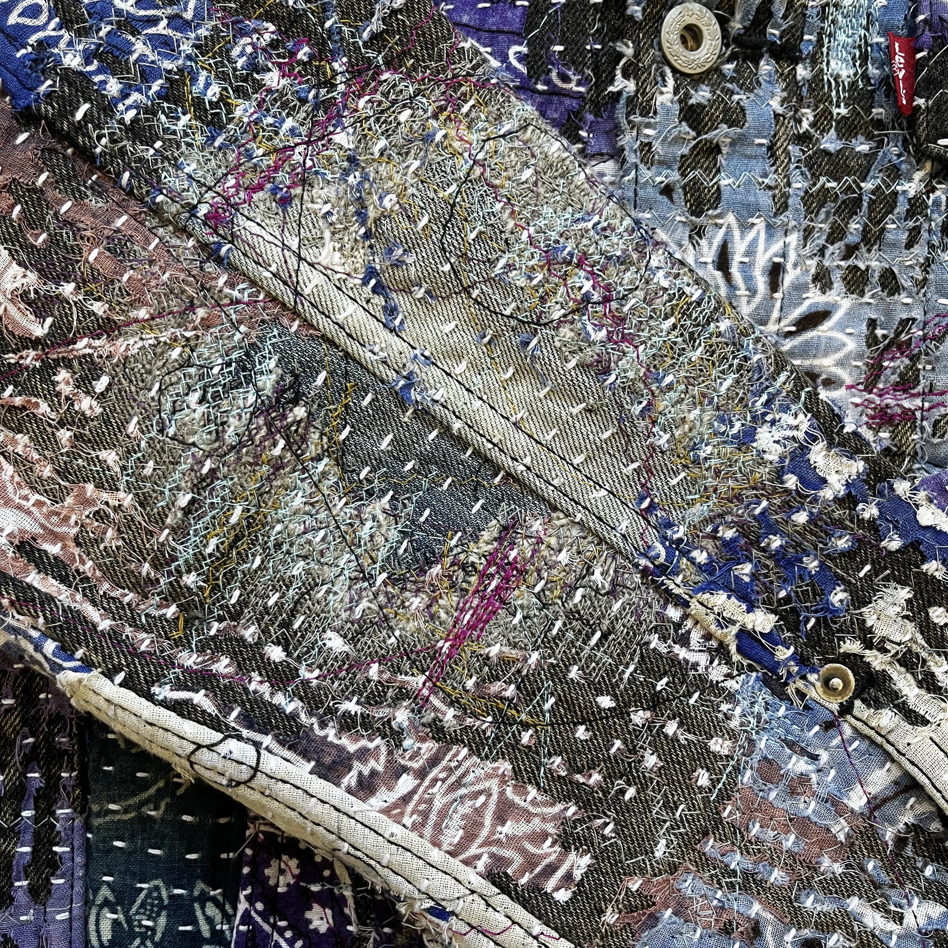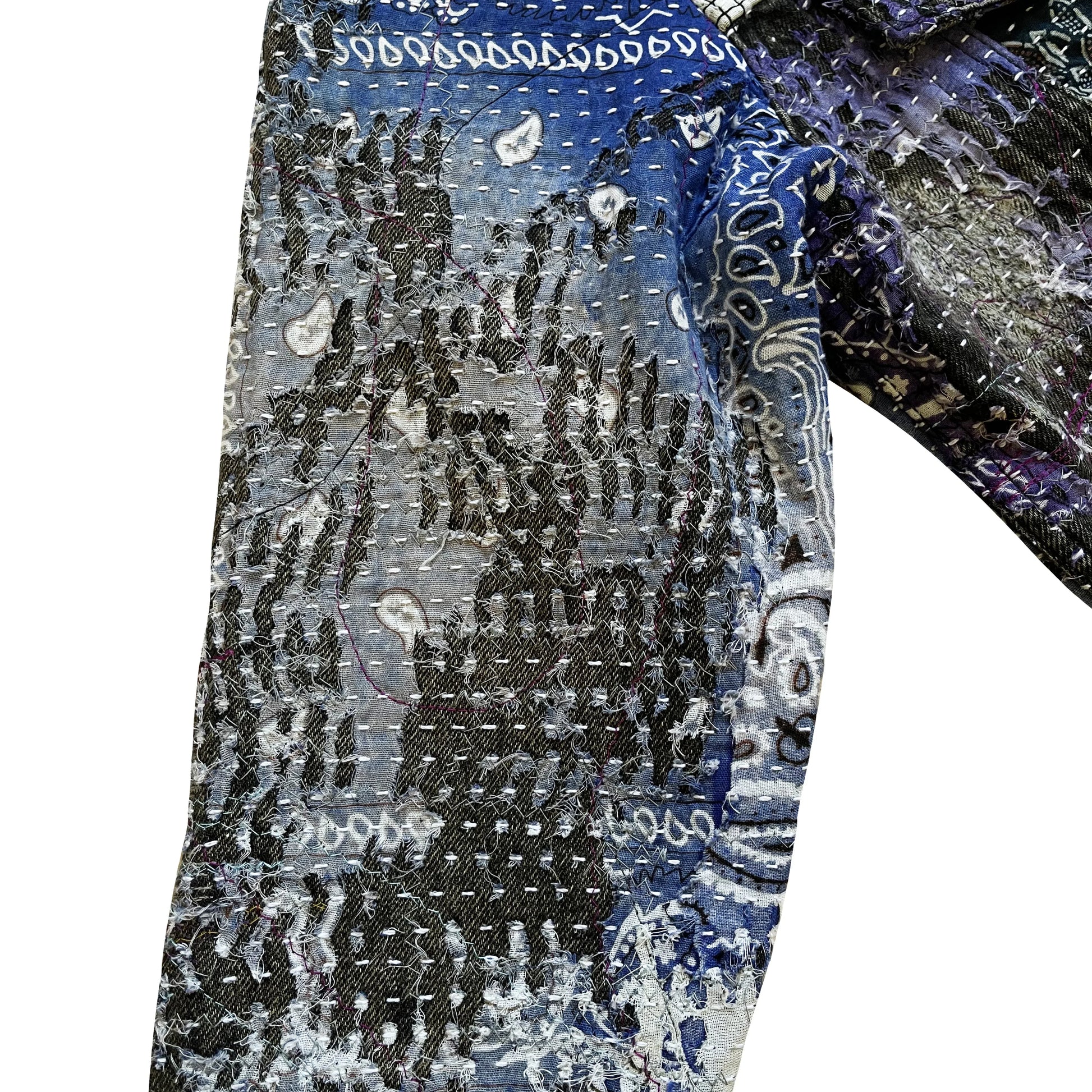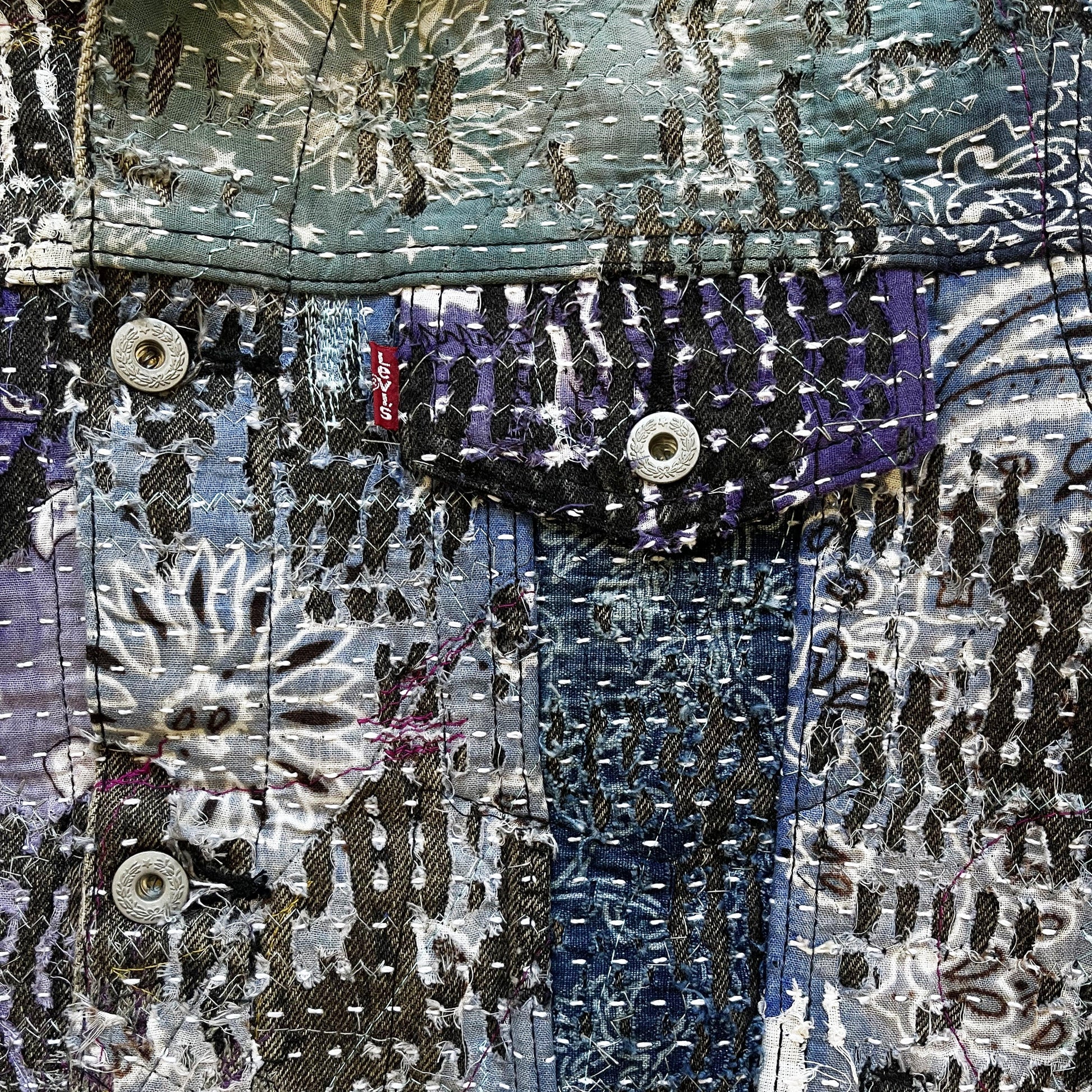 Boro Patchwork Sashiko Distressed Denim Trucker Jacket - M
