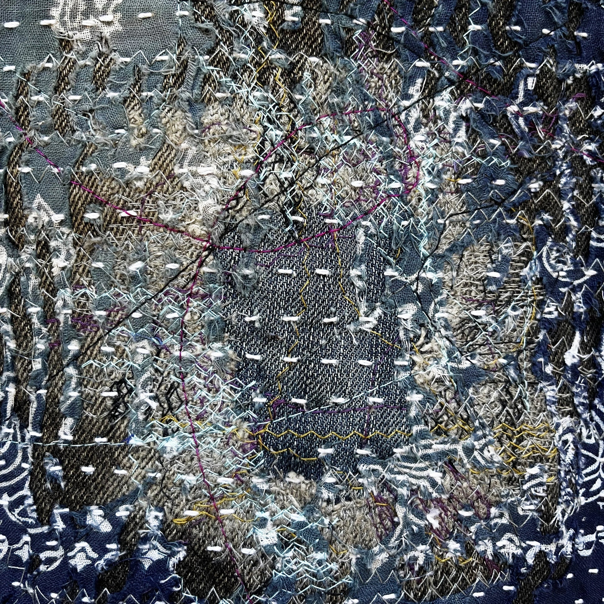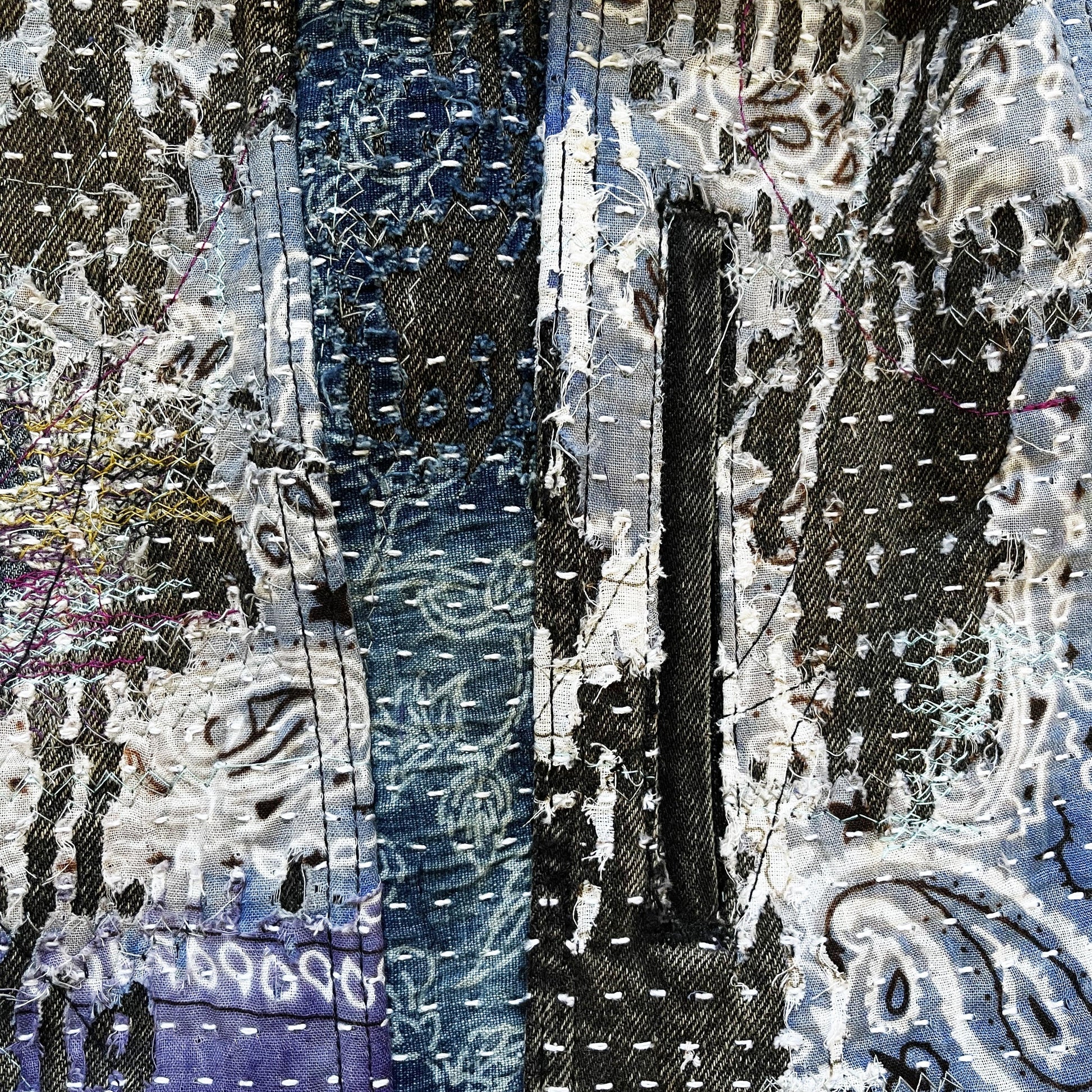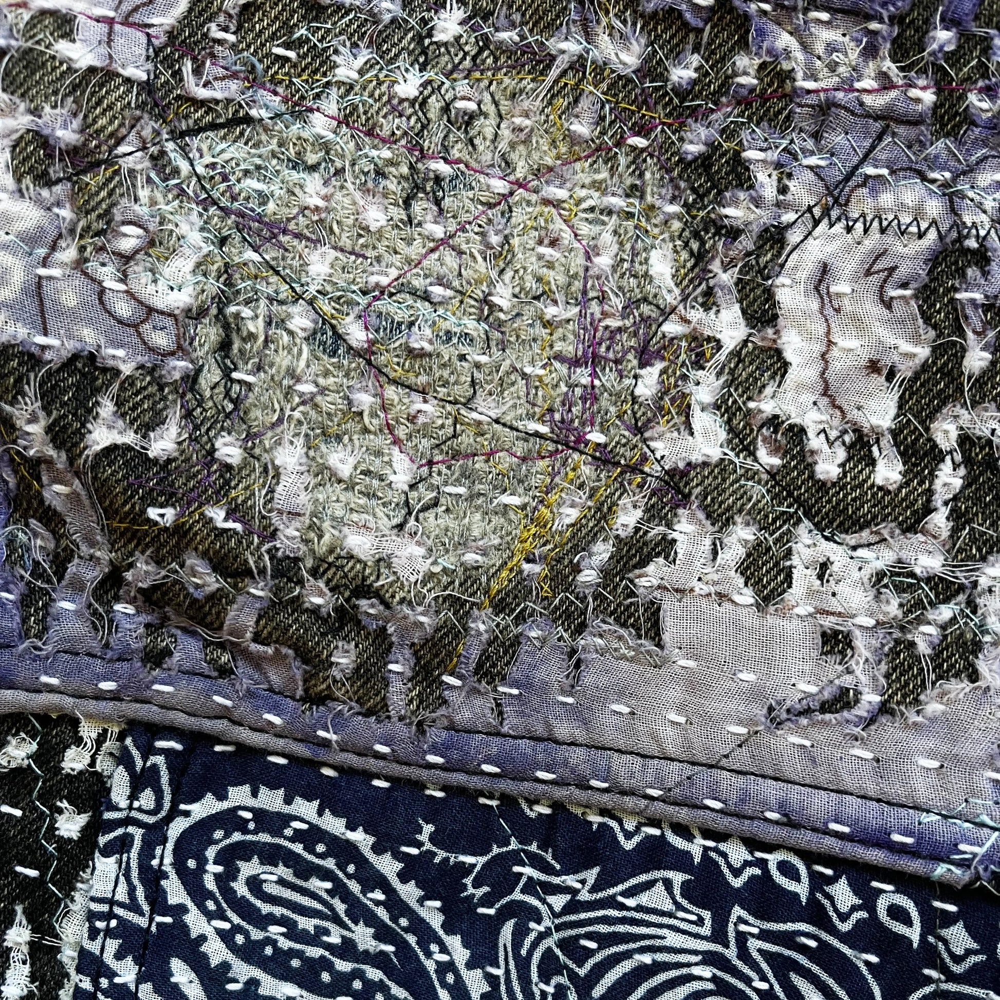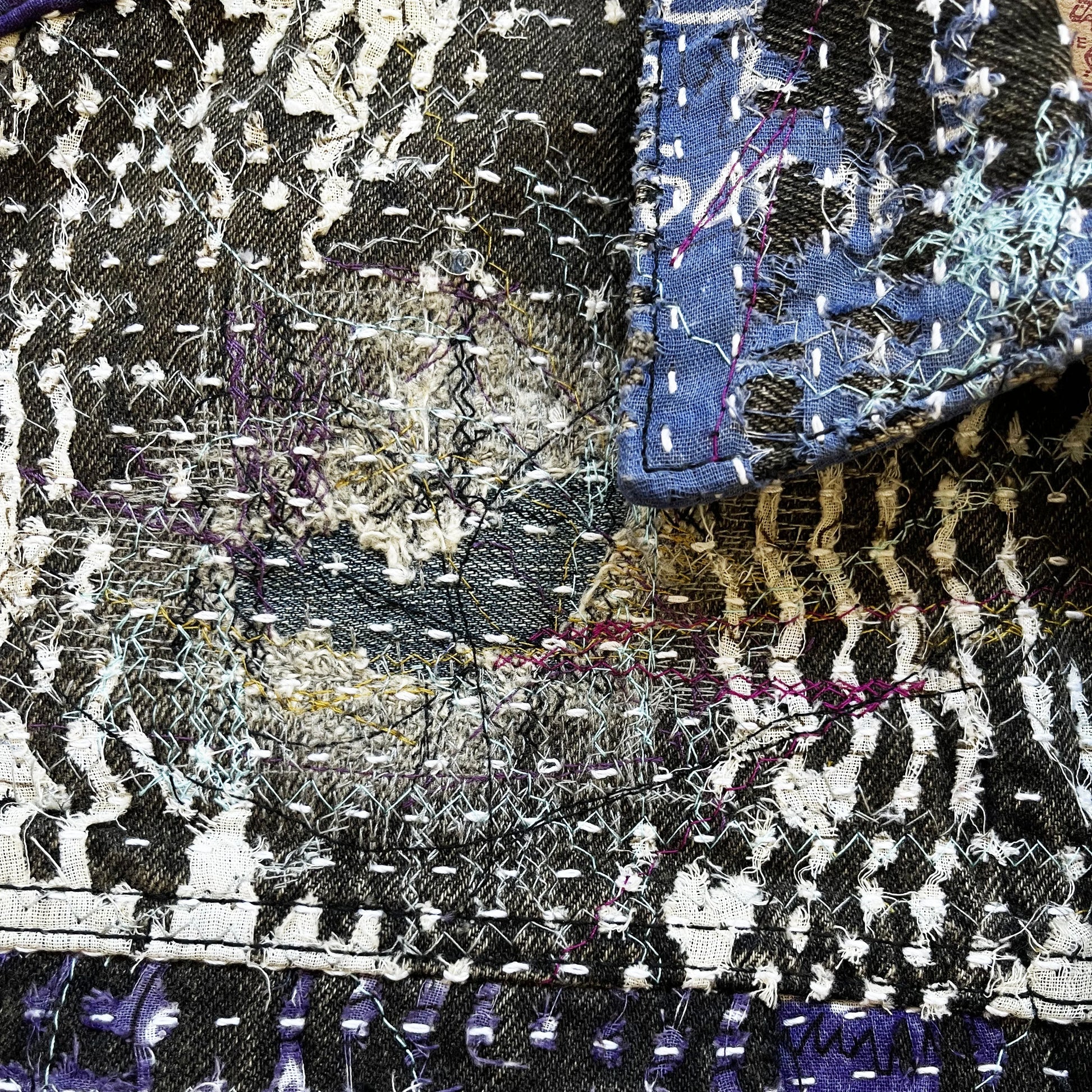 Boro Patchwork Sashiko Distressed Denim Trucker Jacket - M