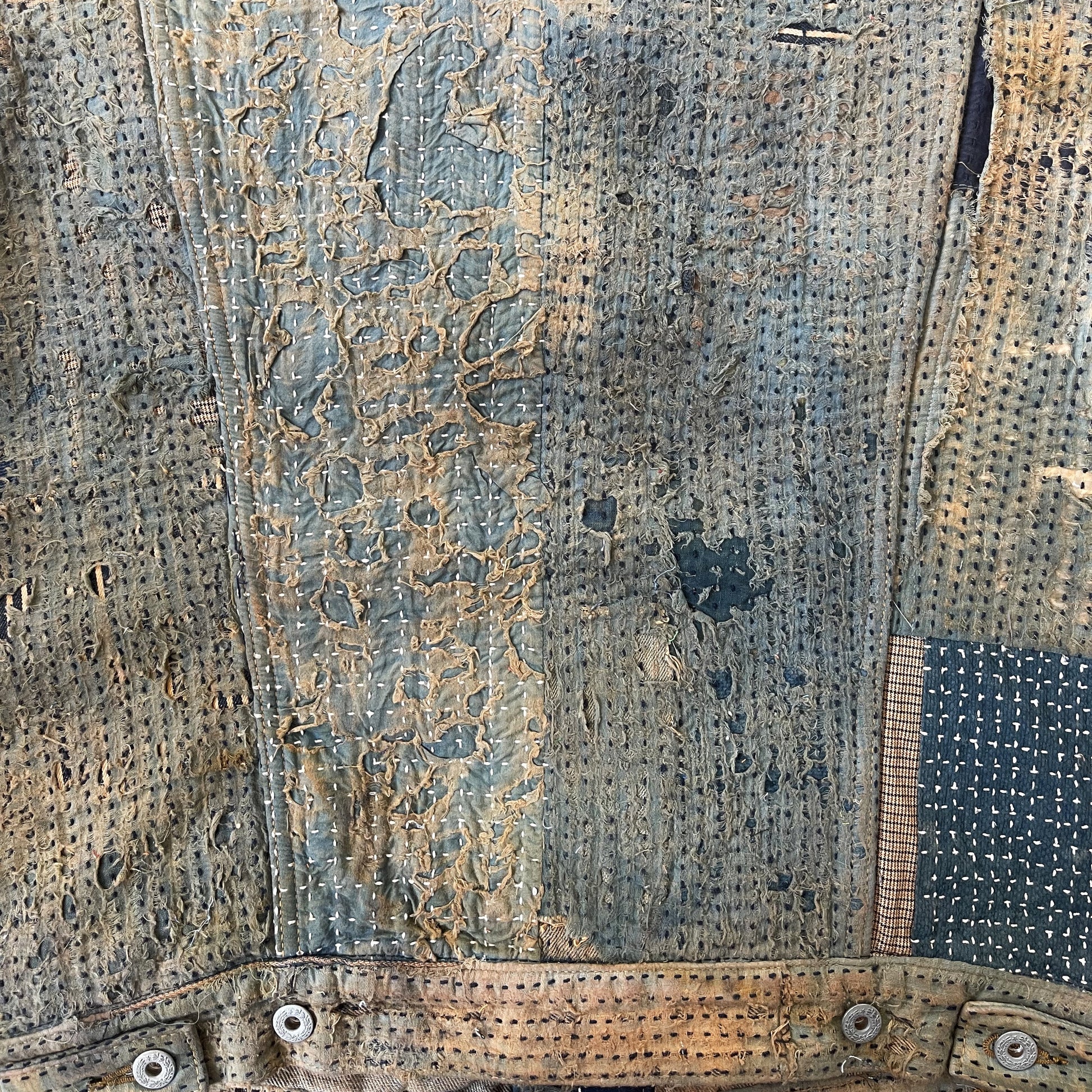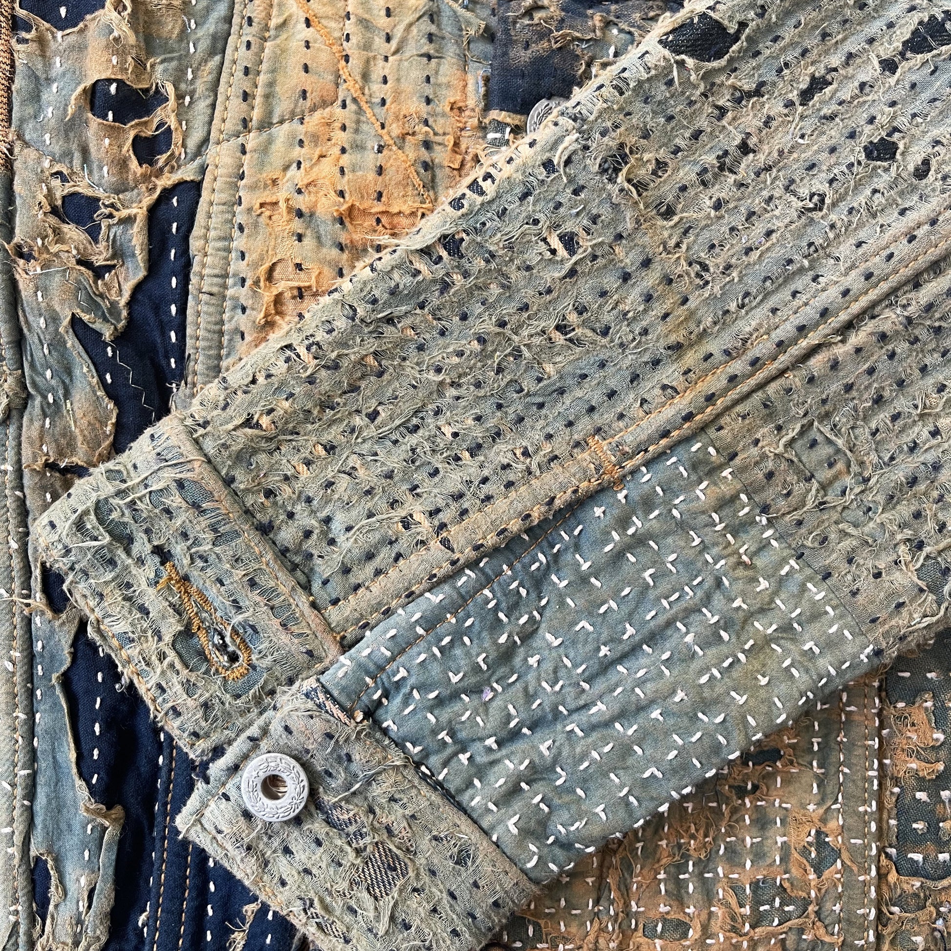 Boro Sashiko Distressed Denim Trucker Jacket - XL