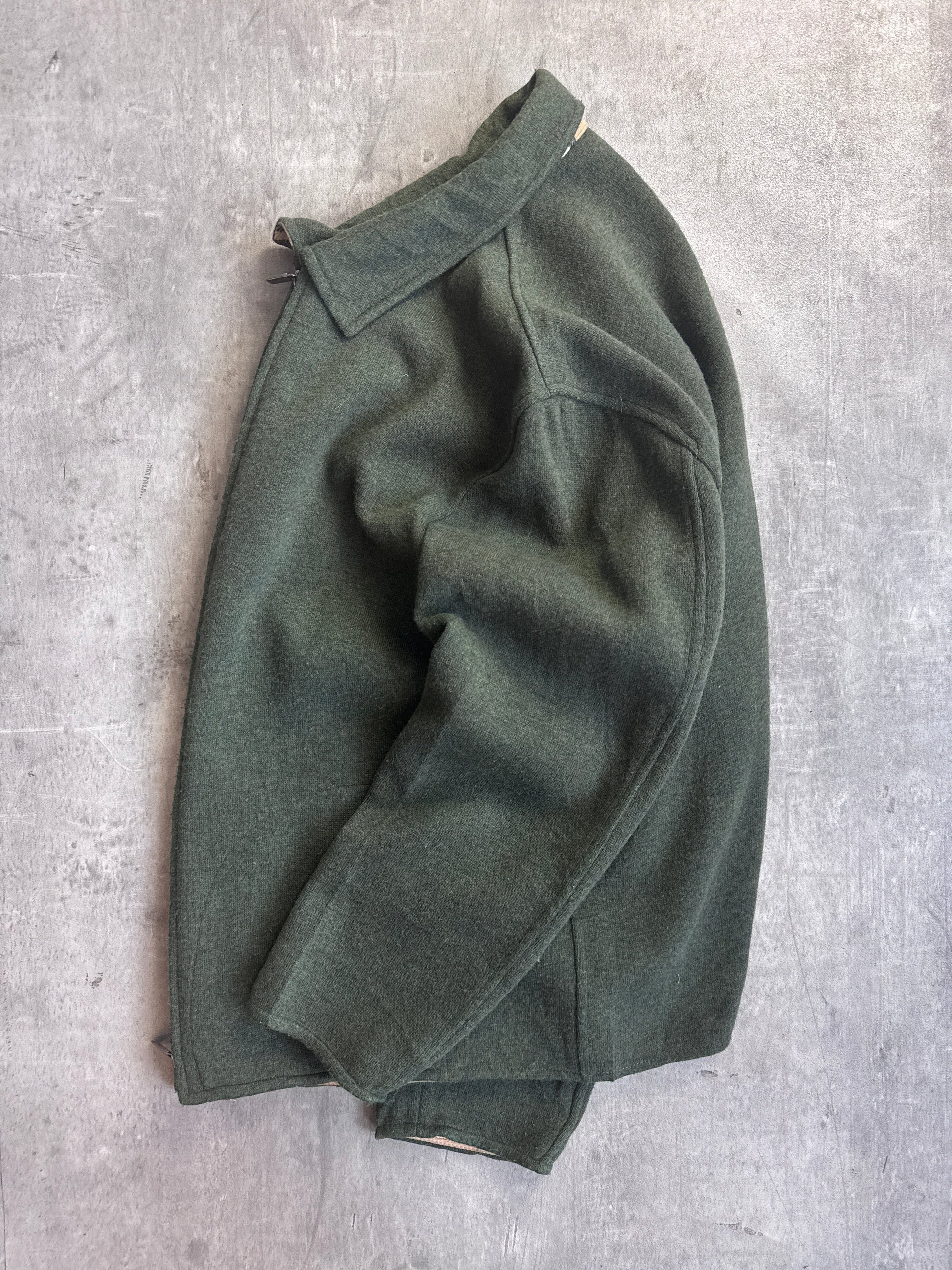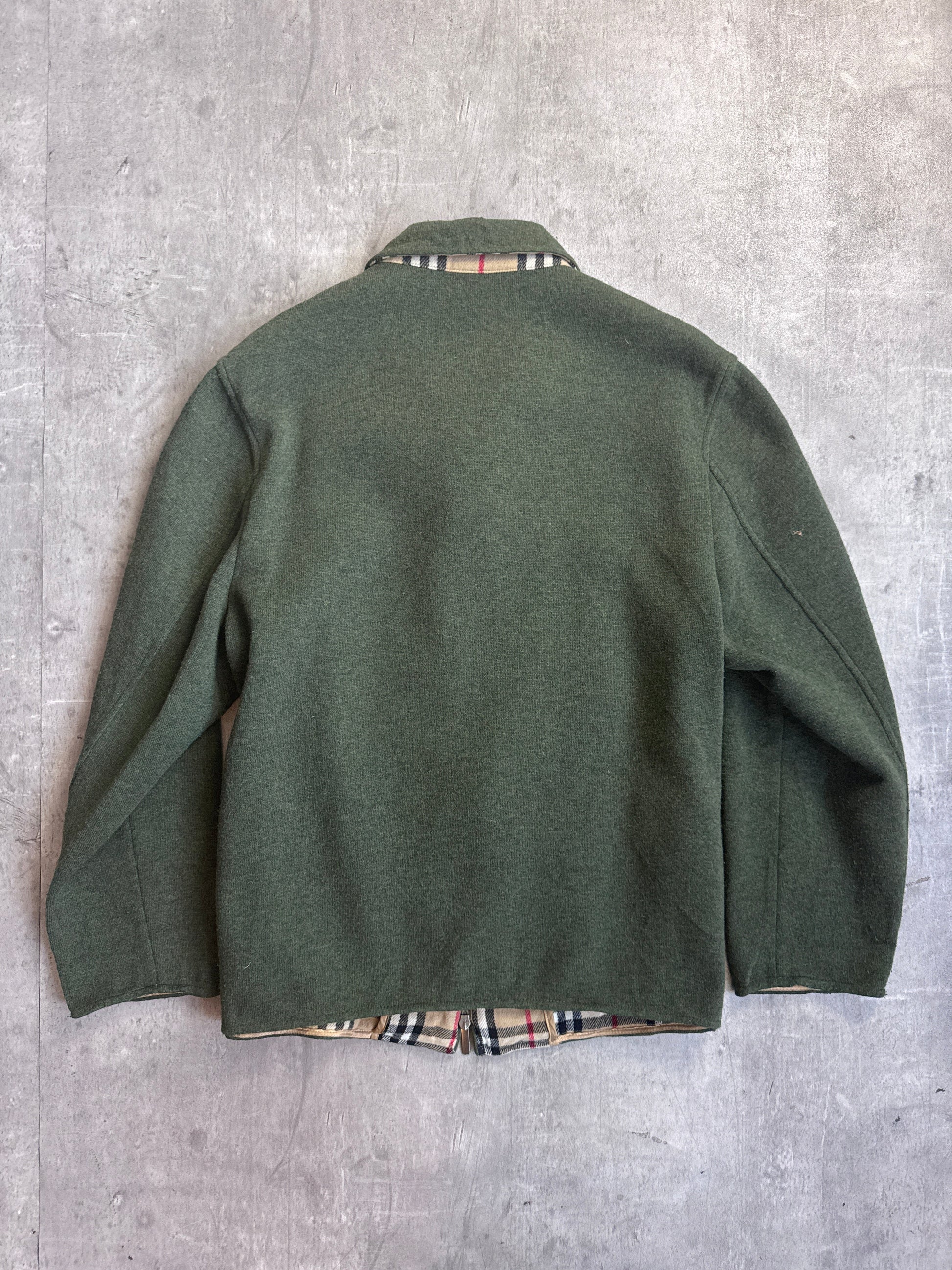 Burberry Bottle Green Lana Wool Blend Nova Check Lined Dual Zip Over Shirt