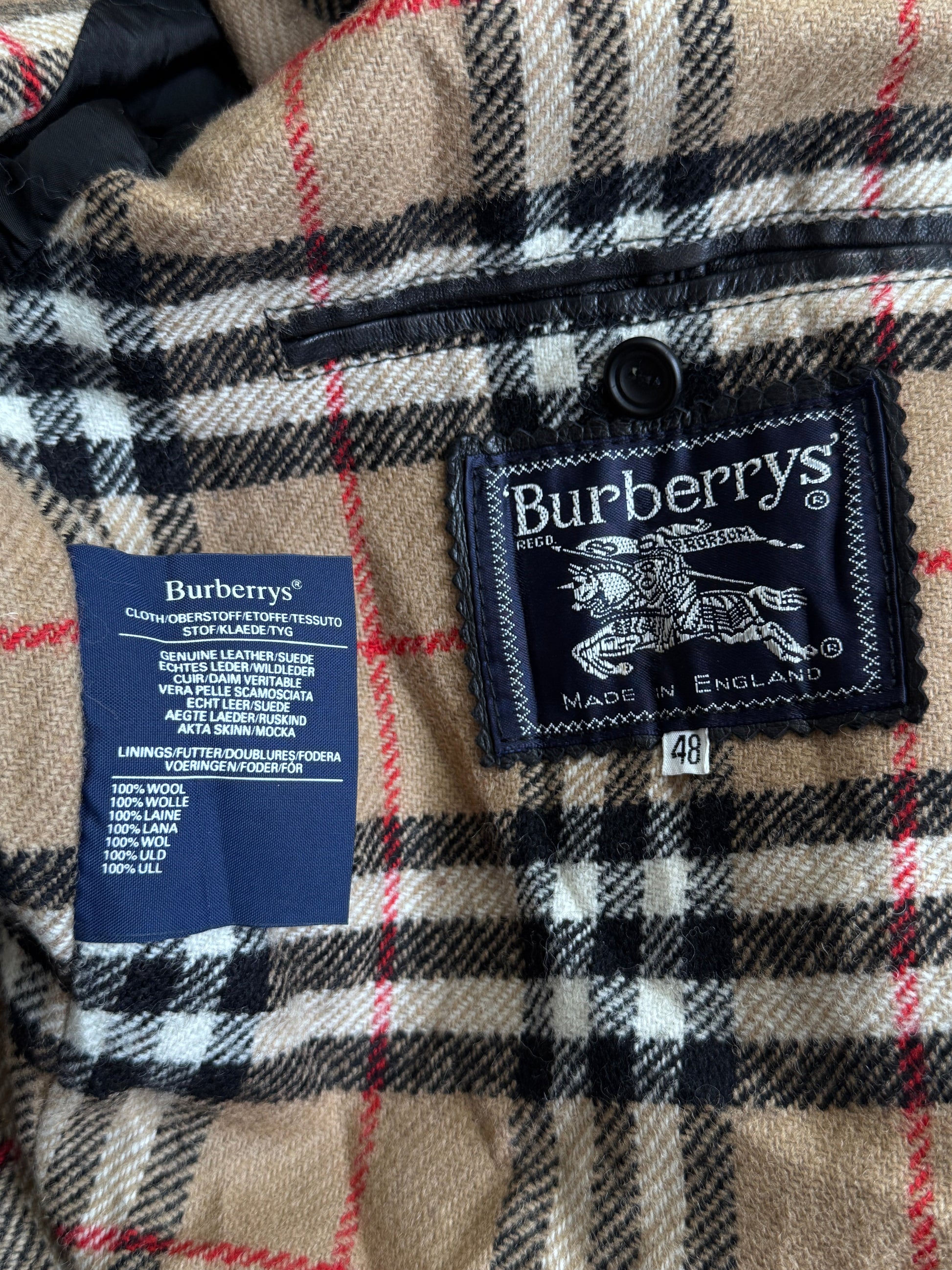 Burberry Nova Check Wool Lined Black Leather Bomber Jacket