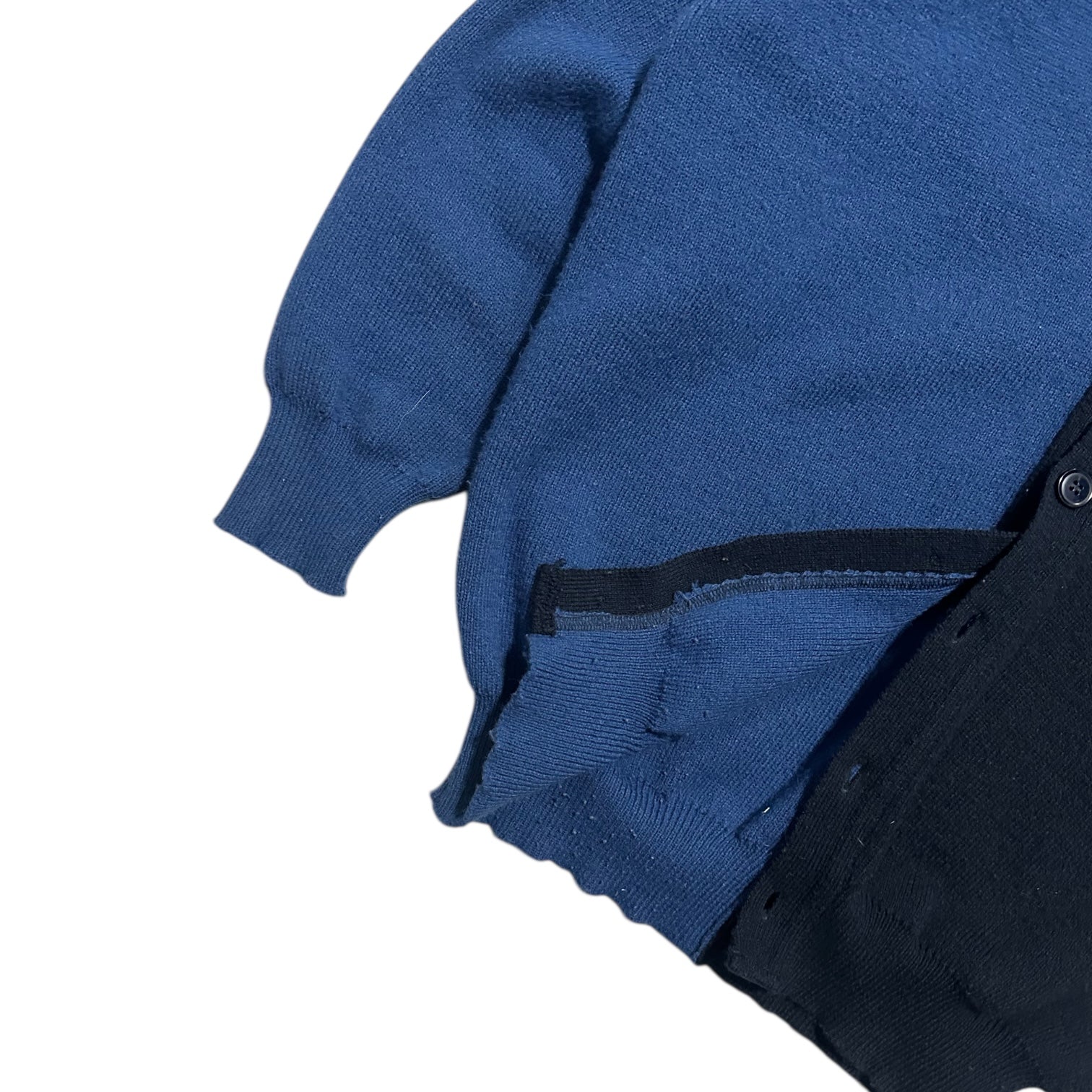 Circa 2010s piece, in a lovely two tone blue and navy blue, button up cardigan. 100% acrylic. Oversized and boxy fit. Size S, fits M/L. Pit to pit 24”, neck to hem 28”. Good used condition with some signs of pilling, could do with a debobbling!