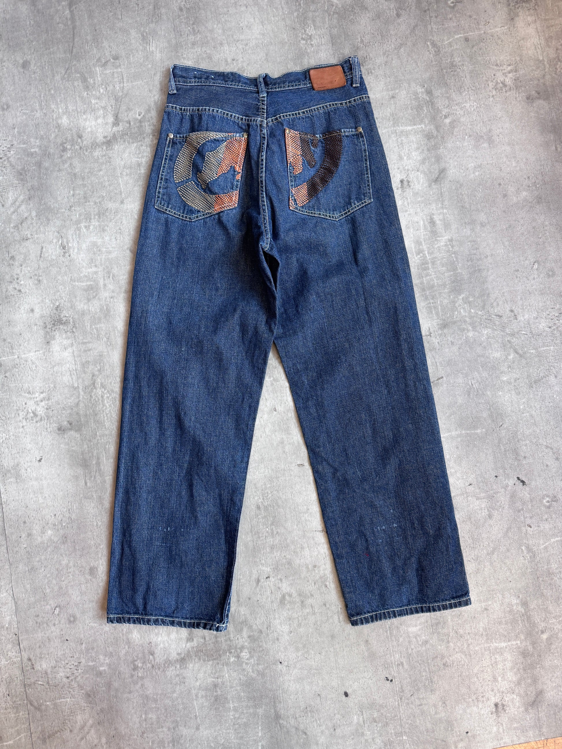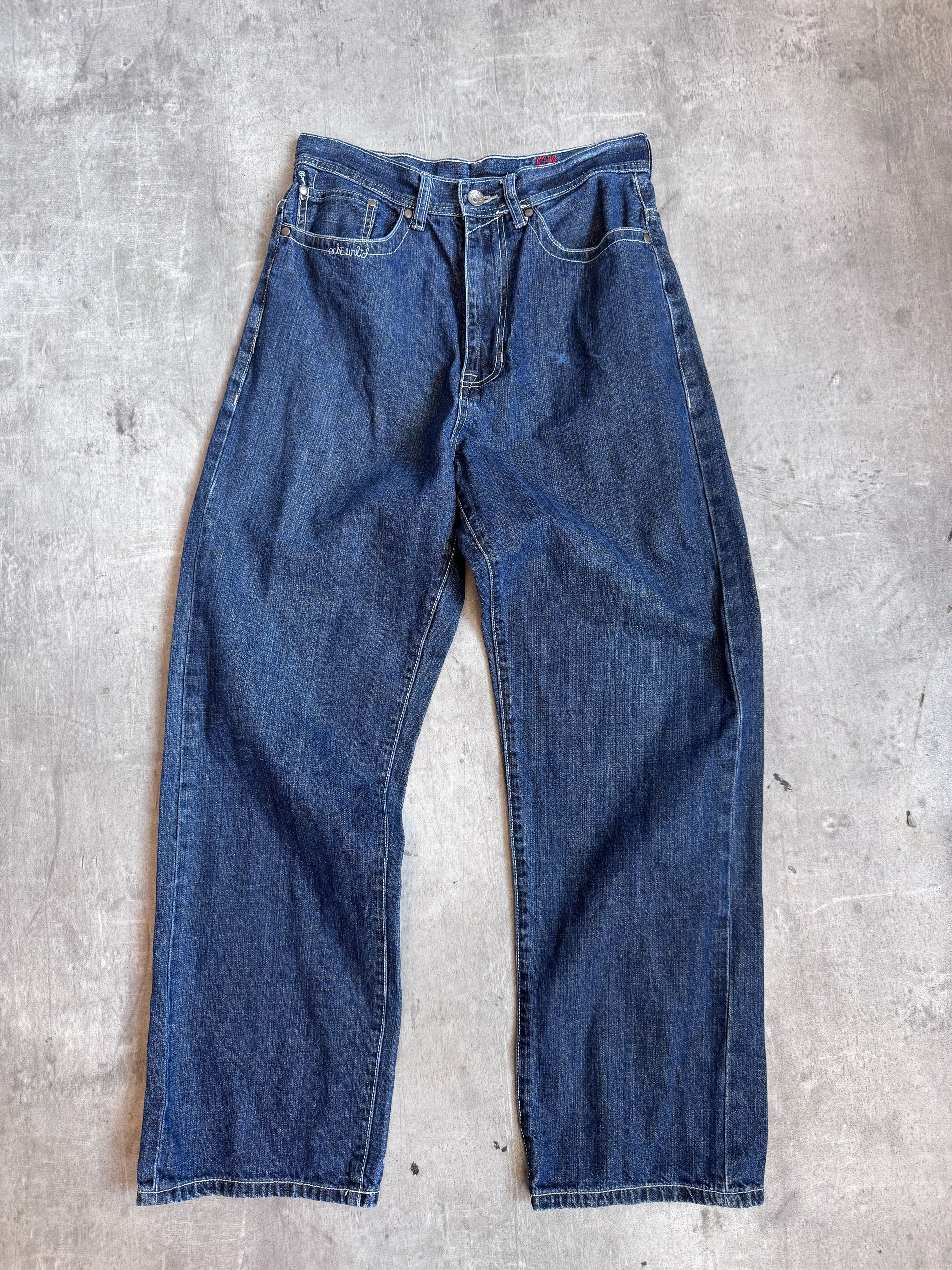A classic pair of Ecko jeans with bold embroidered back pocket detailing, bringing that unmistakable late-90s/early-2000s streetwear energy. Built with a relaxed, durable denim construction and finished with statement stitching and logo embroidery, these are the perfect throwback piece — ideal for Y2K fits, baggy denim styling, and anyone tapping into true archive streetwear silhouettes.