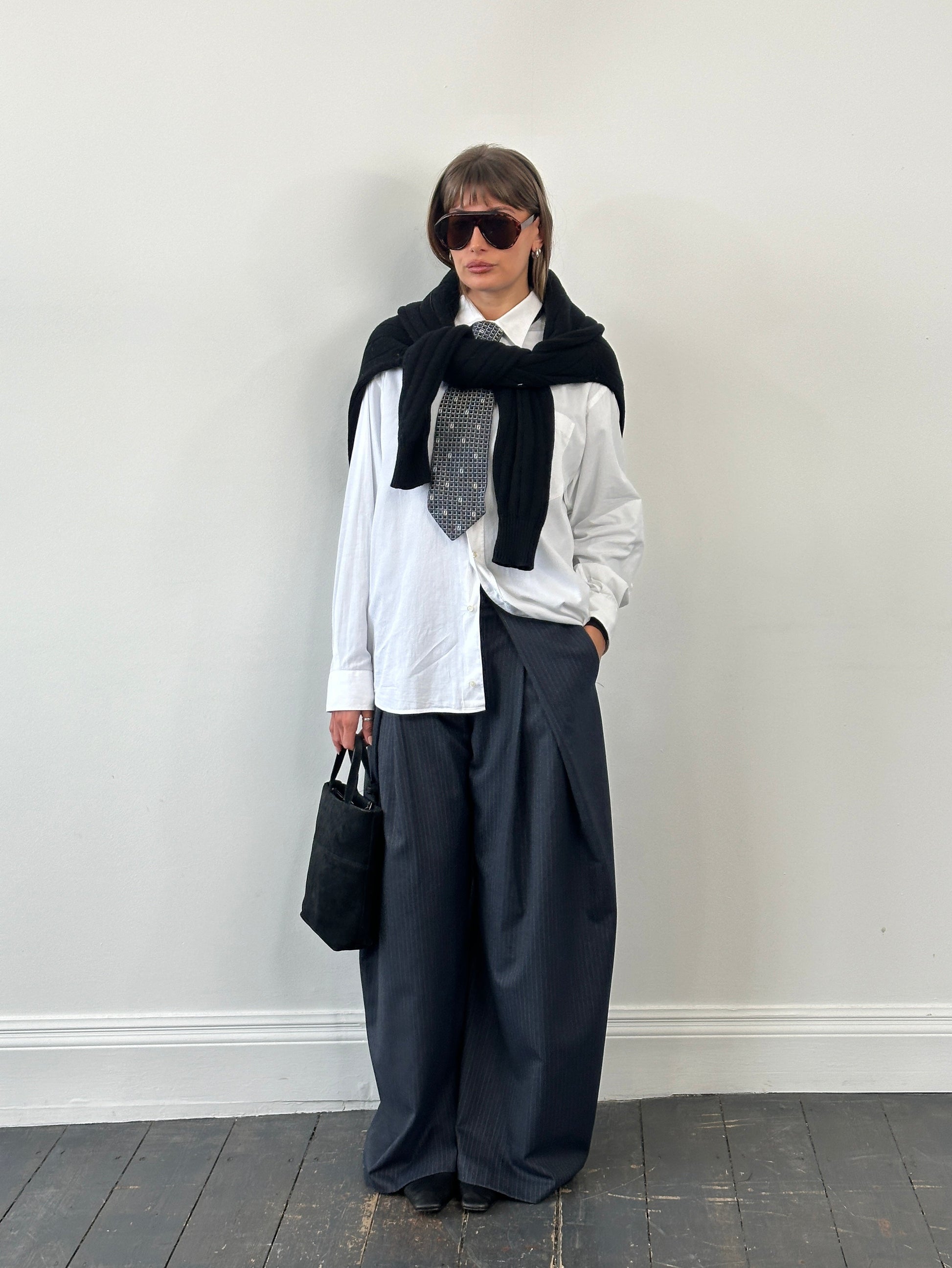 A refined vintage tie from Fendi Cravatte, crafted in Italy from pure silk and finished with an all-over geometric monogram pattern. The design balances classic tailoring with subtle branding, offering a polished accessory that elevates both formal and modern wardrobes. A timeless piece dating to the 1990s.