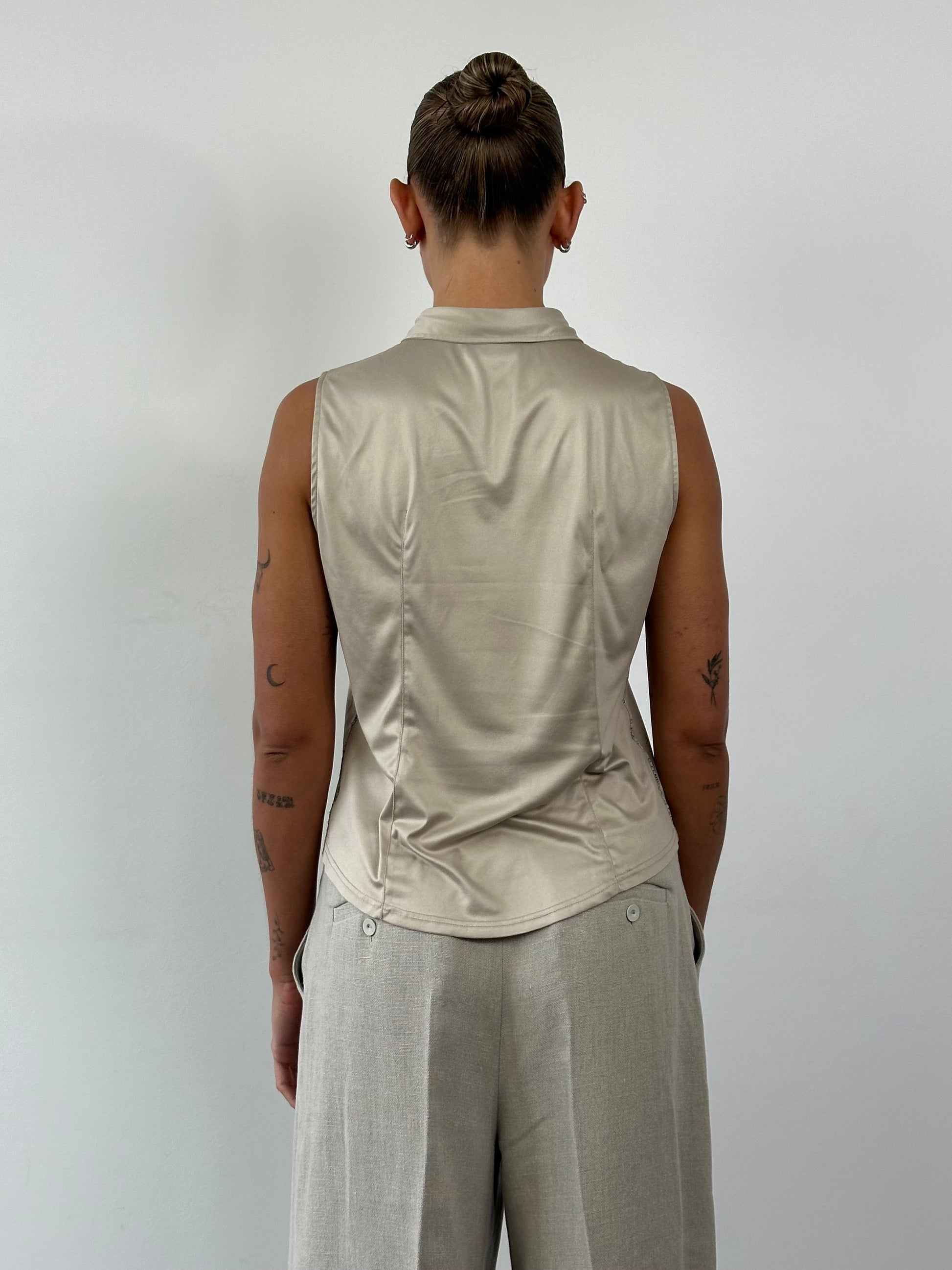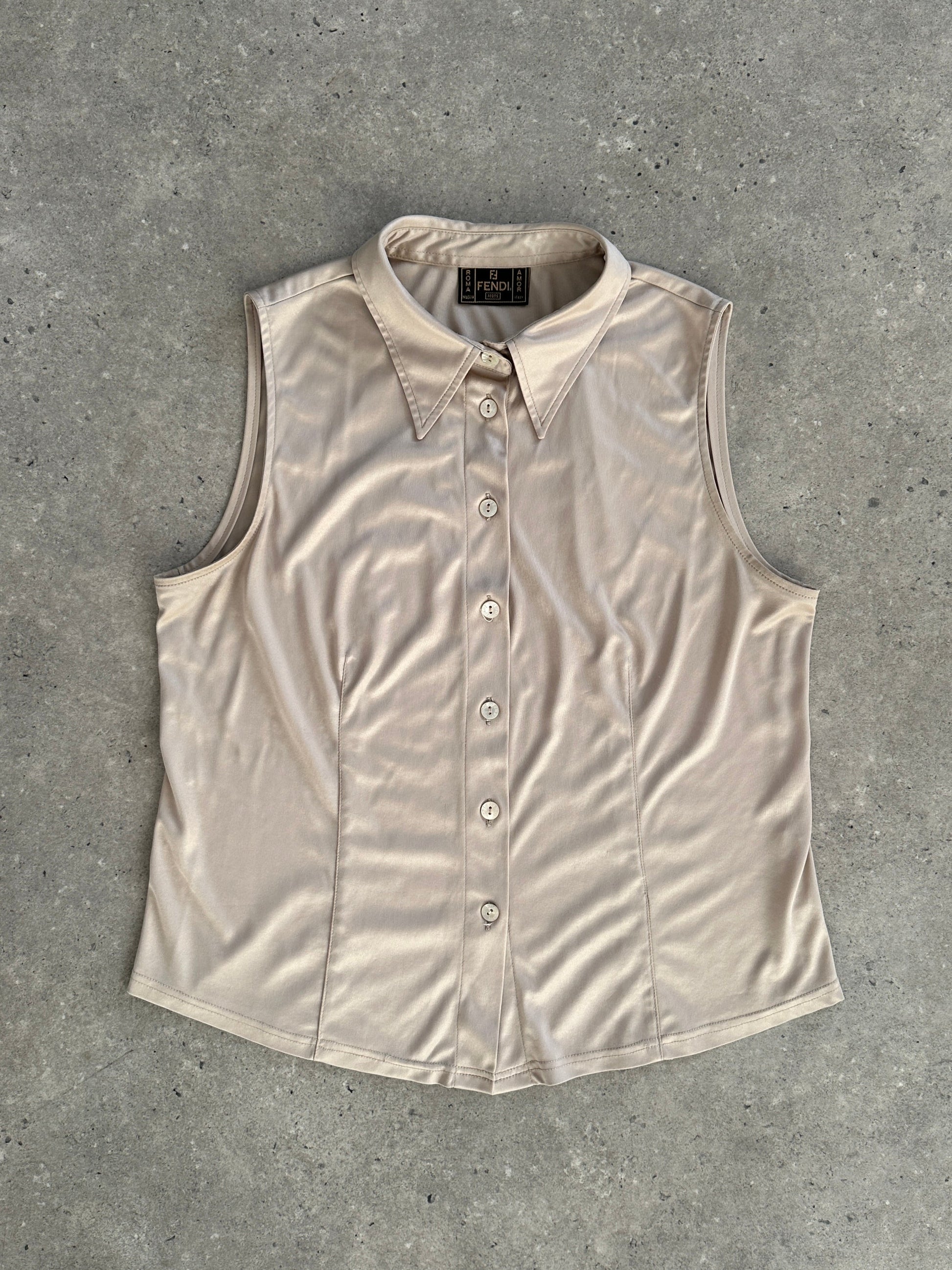 Fendi Sleeveless Satin Logo Shirt - M/L