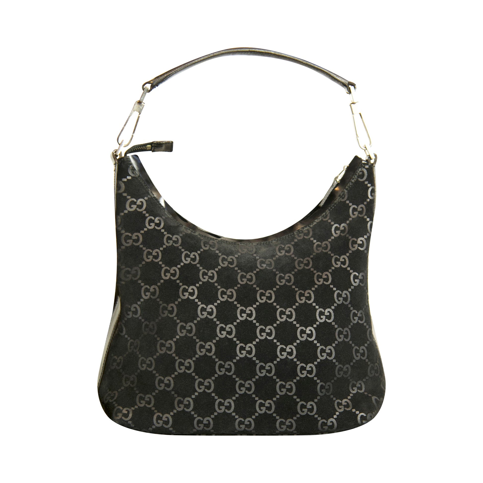 A refined and understated Gucci shoulder bag crafted in rich black suede, finished with subtle monogram detailing for a quiet, luxurious feel. Elegant yet practical, this piece leans into Gucci’s more minimal archive language — recognisable to those who know, without loud branding.