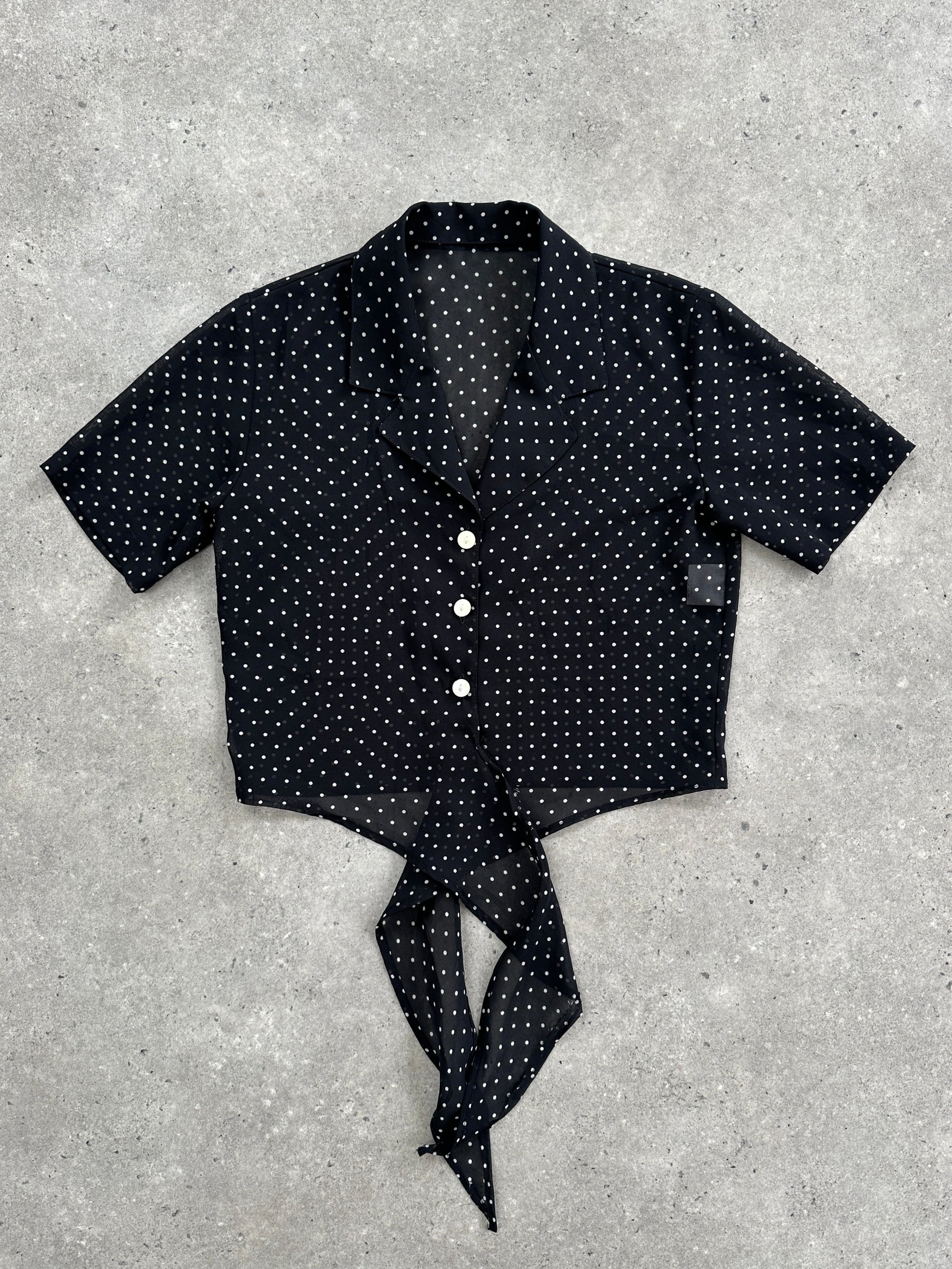 Italian Vintage 2000s Polkadot Sheer Tie Top - S