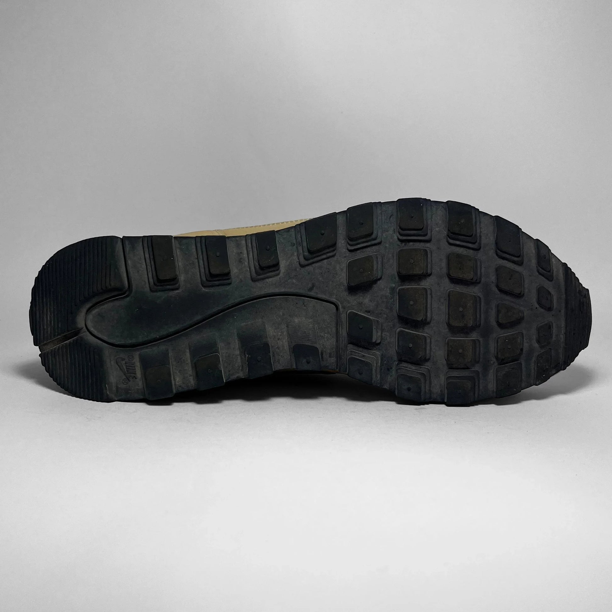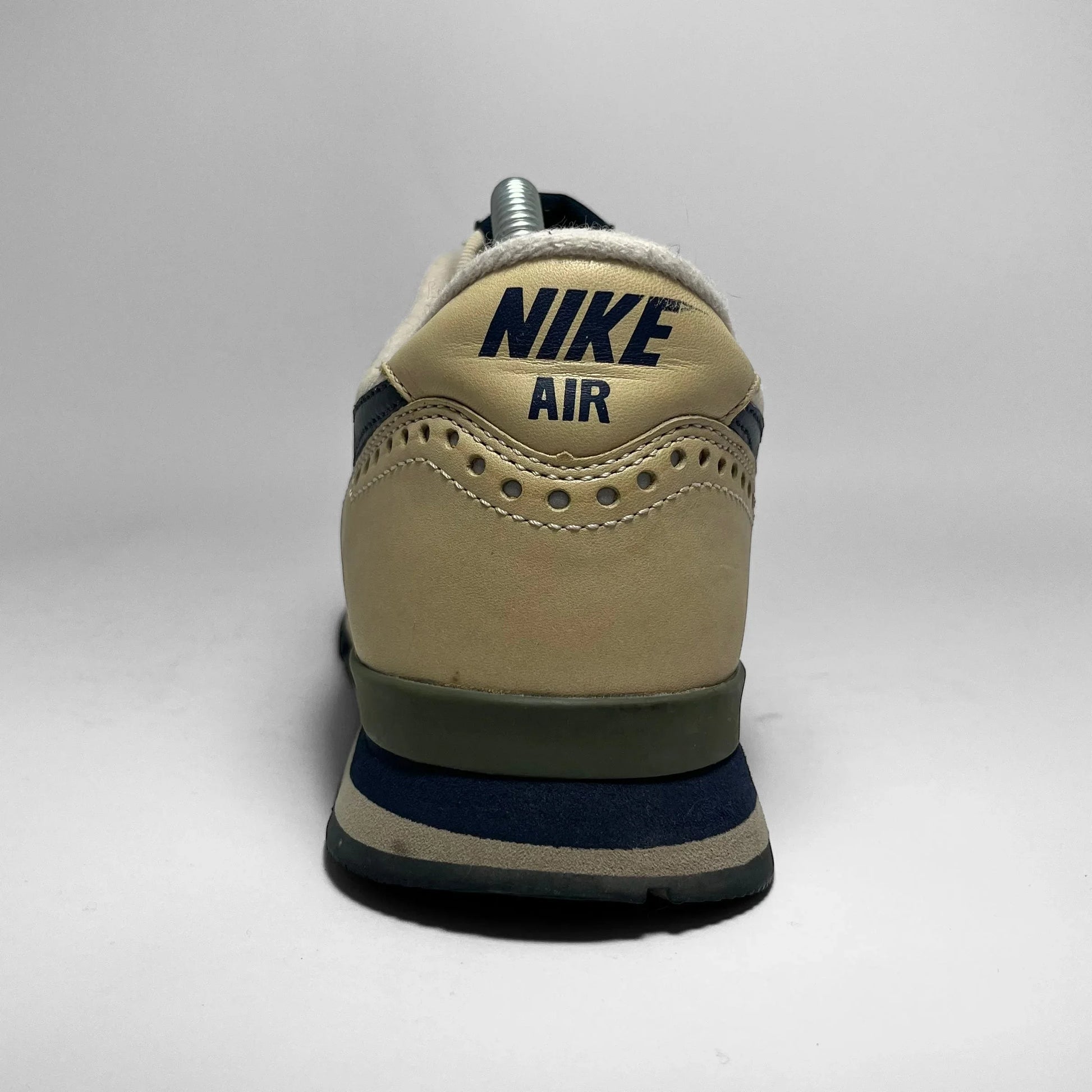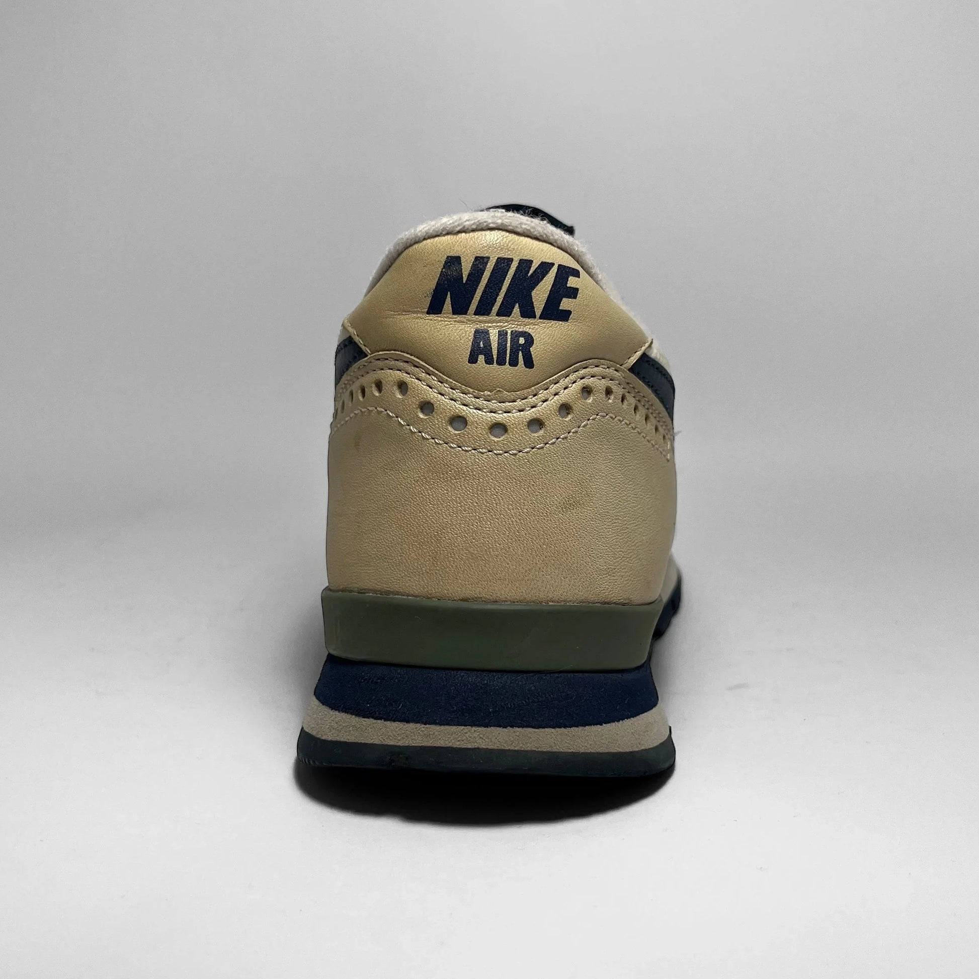 Woven tan upper combined with darker toned leather panels throughout featuring perforation details, dark navy leather swoosh and branded tag on tongue and print on heel.