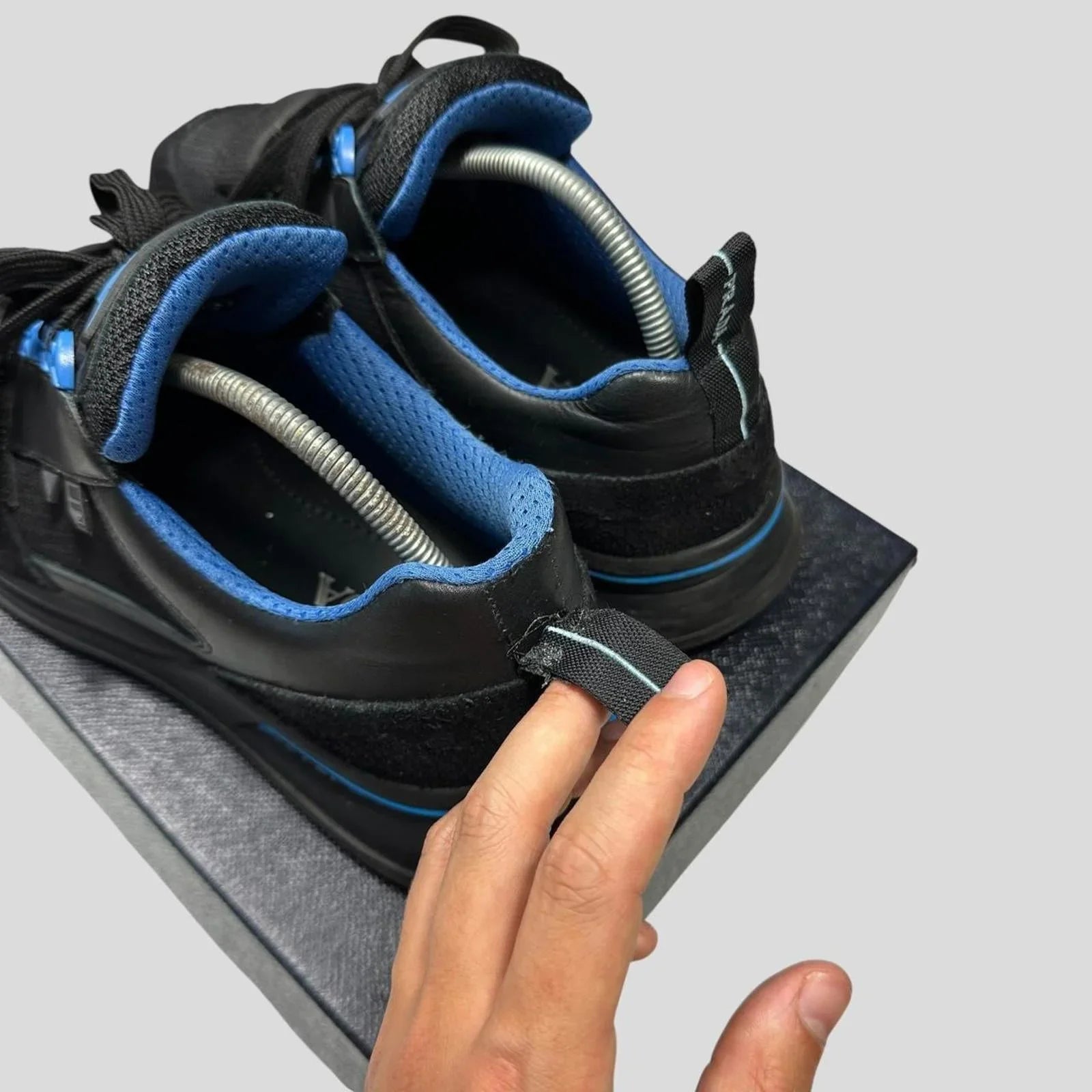 Prada 2018 Mechano Nero Voyage Rubber + Leather Logo Trainers - UK8.5/9