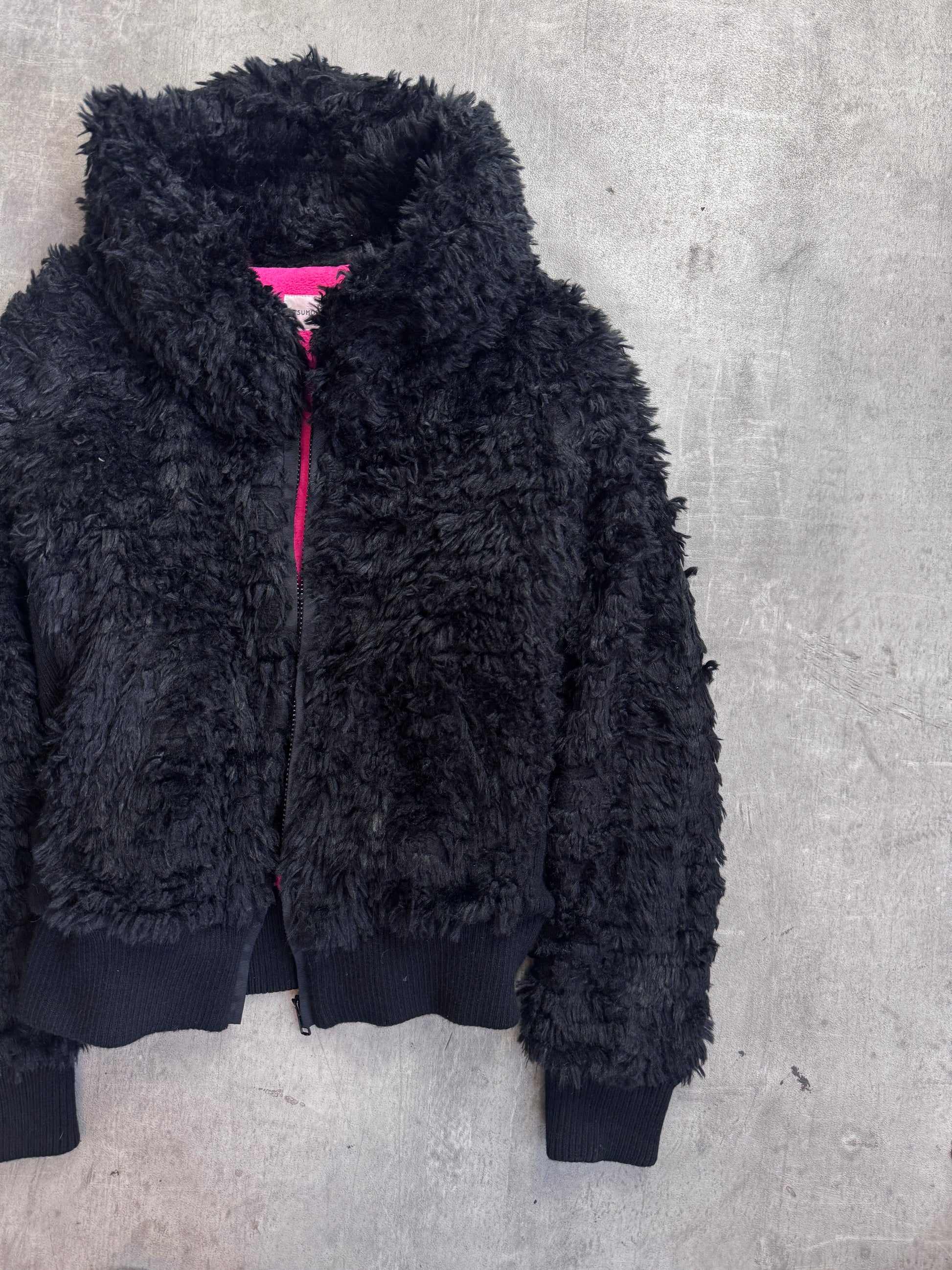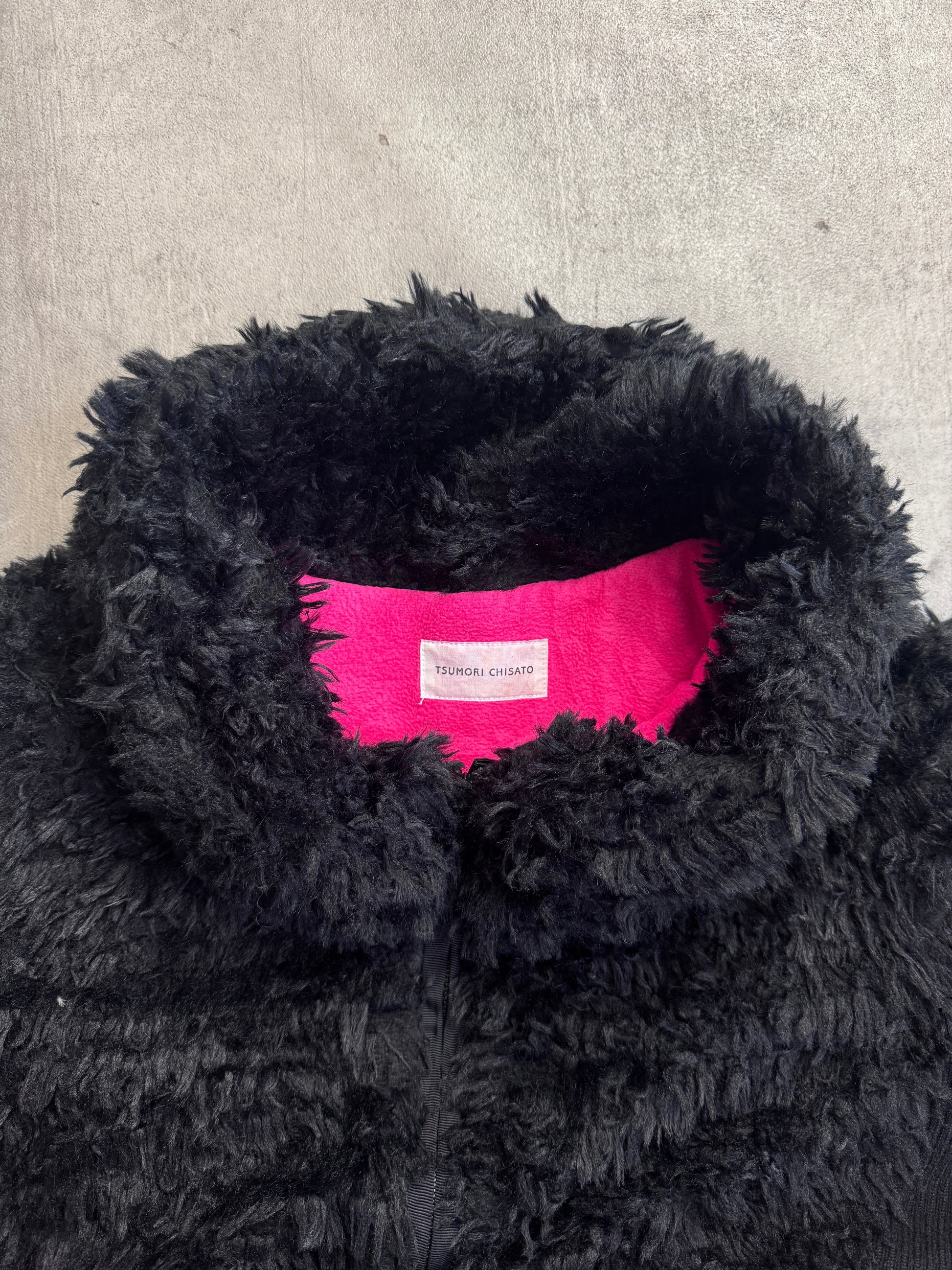 Tsumori Chisato Black Rib Knit Detail Faux Fur Bomber