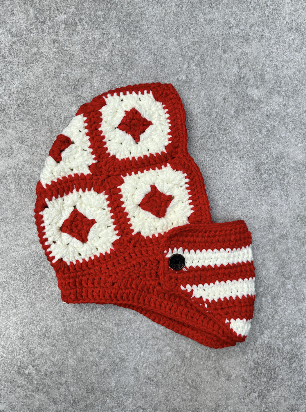Two-Tone Red White Square Crochet Balaclava
