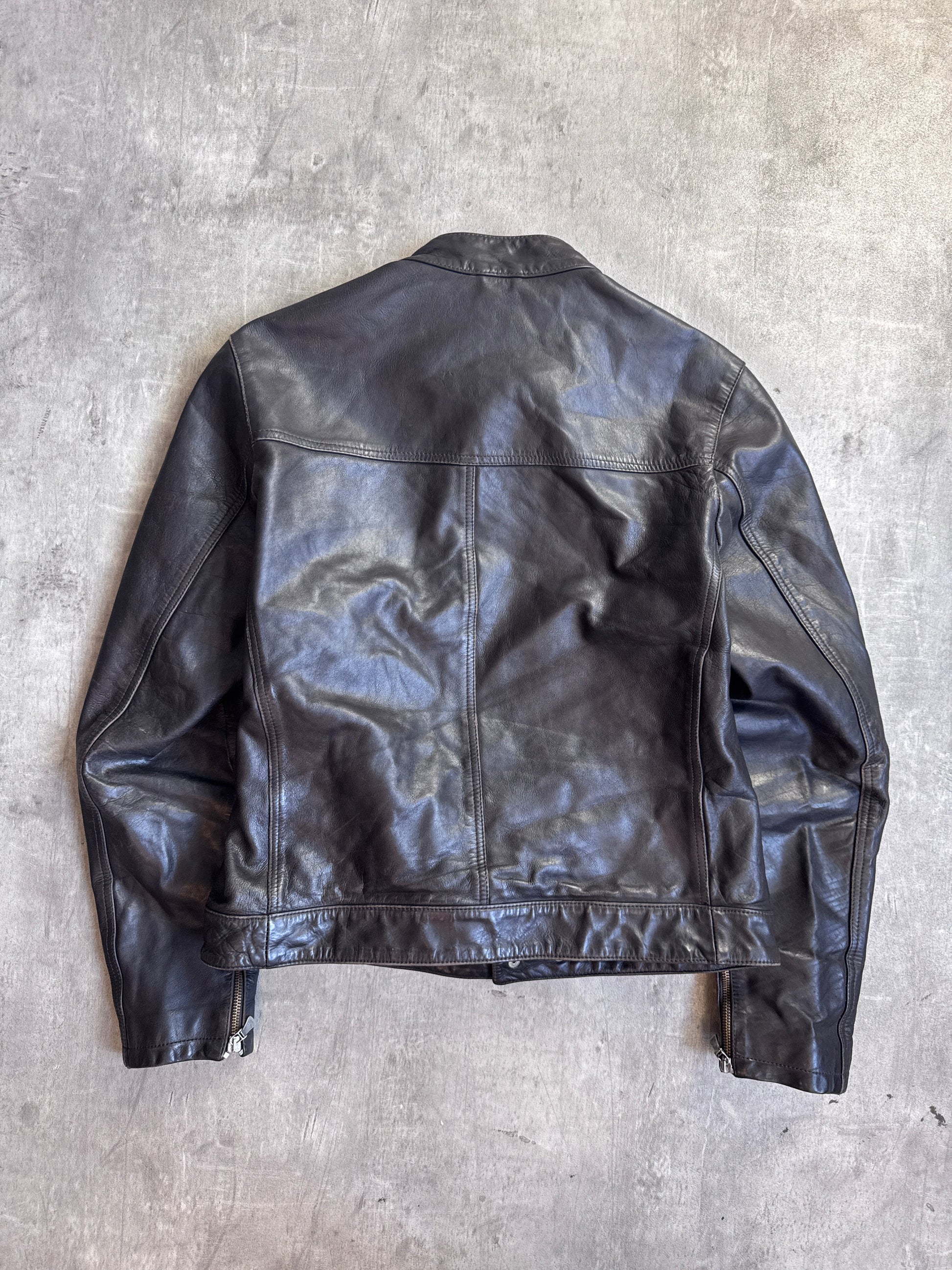 Versace Jeans Couture Double Zip Detail Leather Cafe Racer