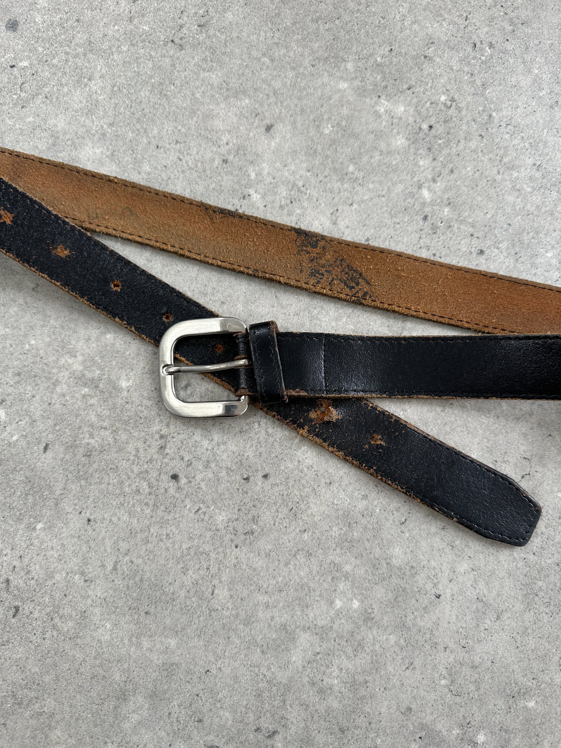 Vintage 1980s Chrome Distressed Leather Belt - W30-38
