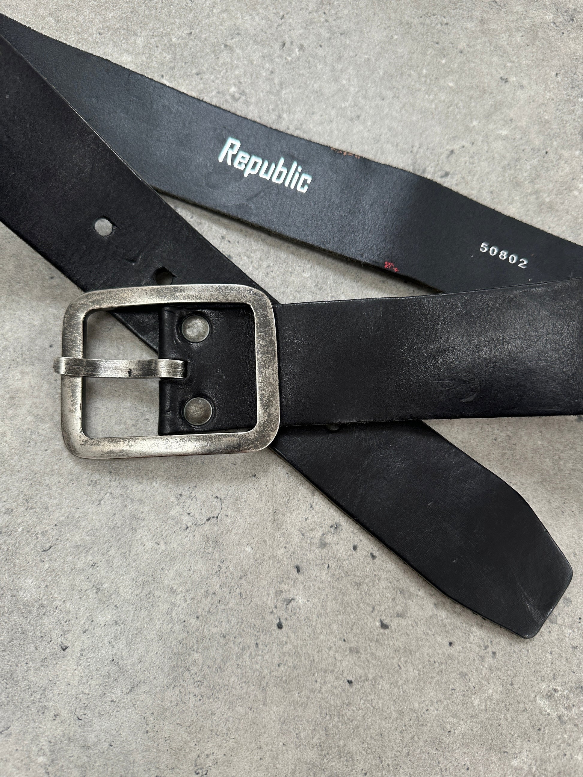 Vintage 1990s Chrome Rectangle Buckle Leather Belt - W35-39
