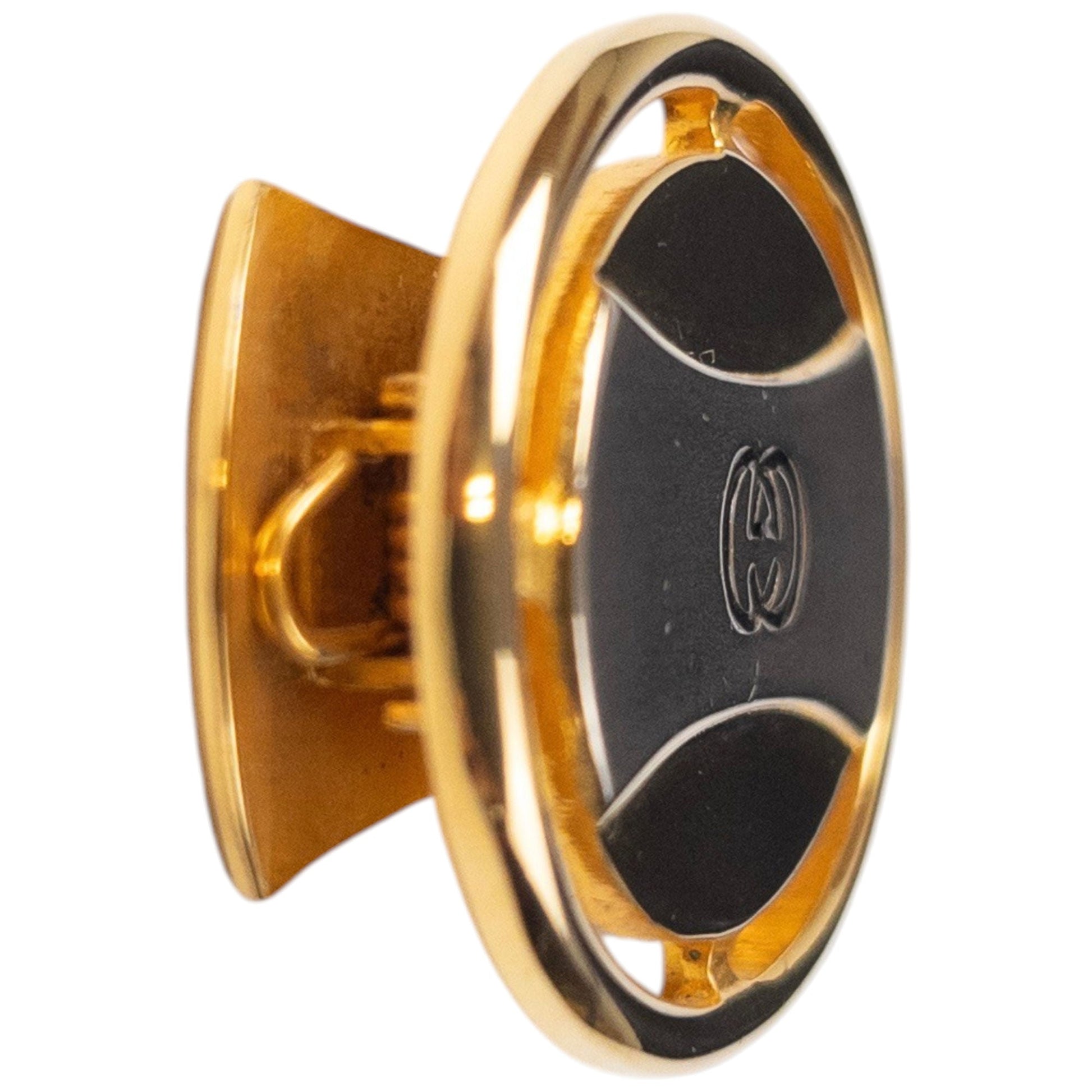 • Other info: Gold colour, silver accent colour, embossed logo, oval clip, 1.25x1.75in size, minor general wear as seen