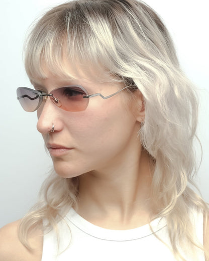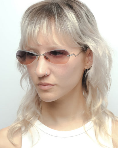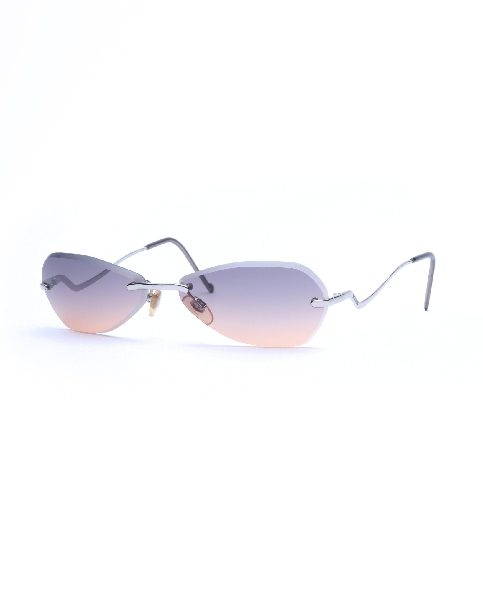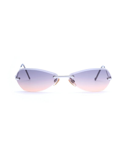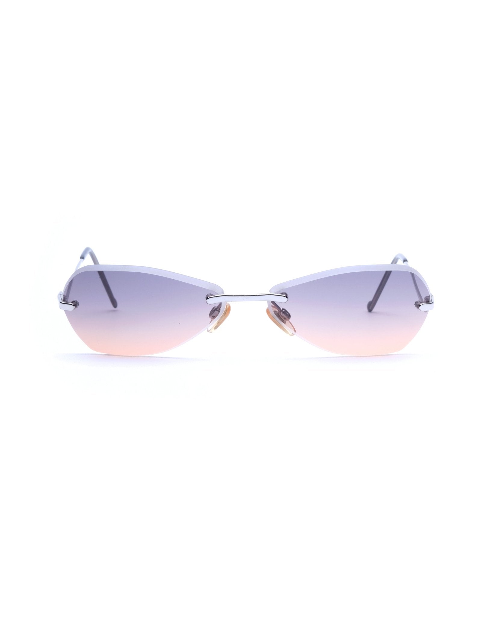 Rimless frame with satin-cut edge lenses featuring a cool-to-warm gradient from grey to apricot. Condition 9/10: Very good condition, superficial wear on the lenses. Comes with its original case.