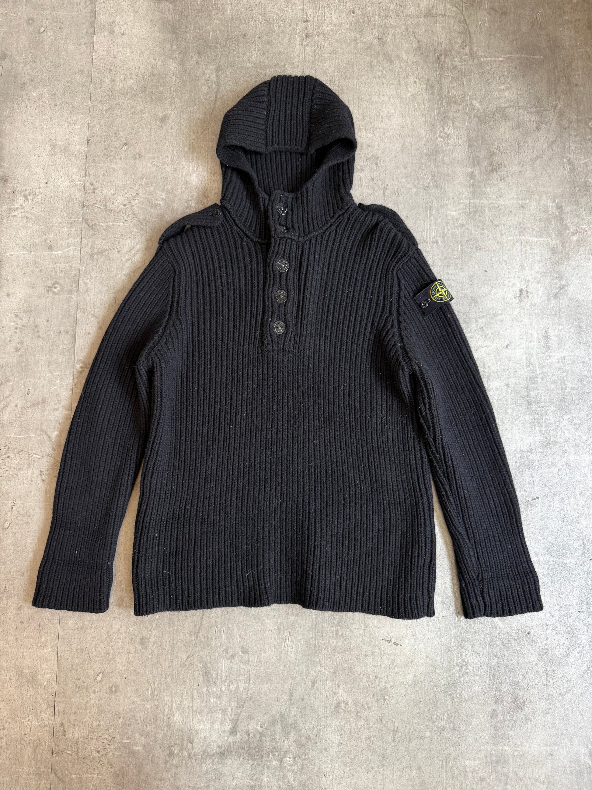 A distinctive Autumn/Winter 2003 Stone Island knit pullover, showcasing the brand’s experimental approach to fabric and construction during the early 2000s. This piece reflects Stone Island’s ability to merge functional design with subtle yet innovative detailing.