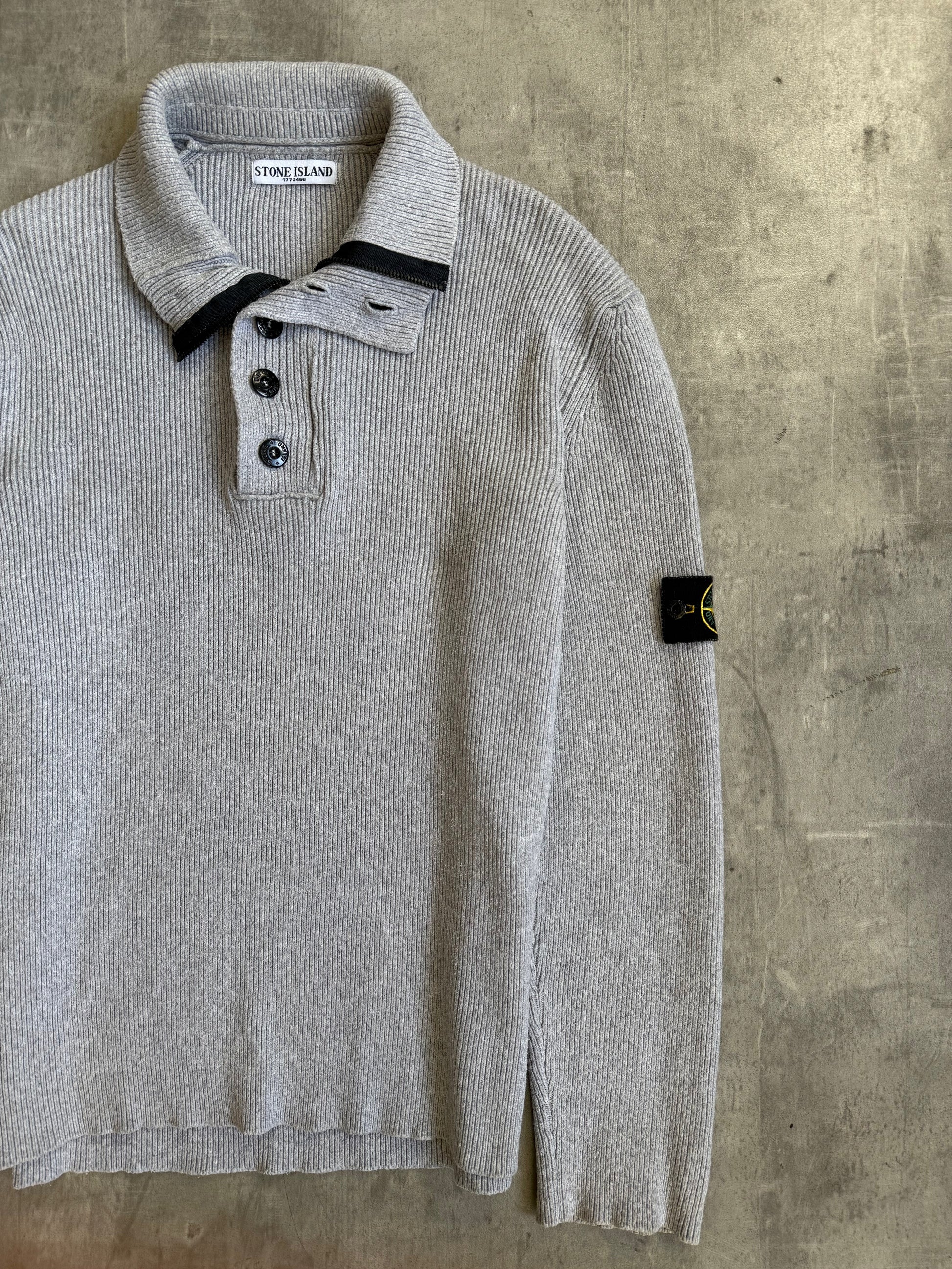 A/W 2009 Stone Island Ribbed Knit 1/4 Zip Grey Sweater