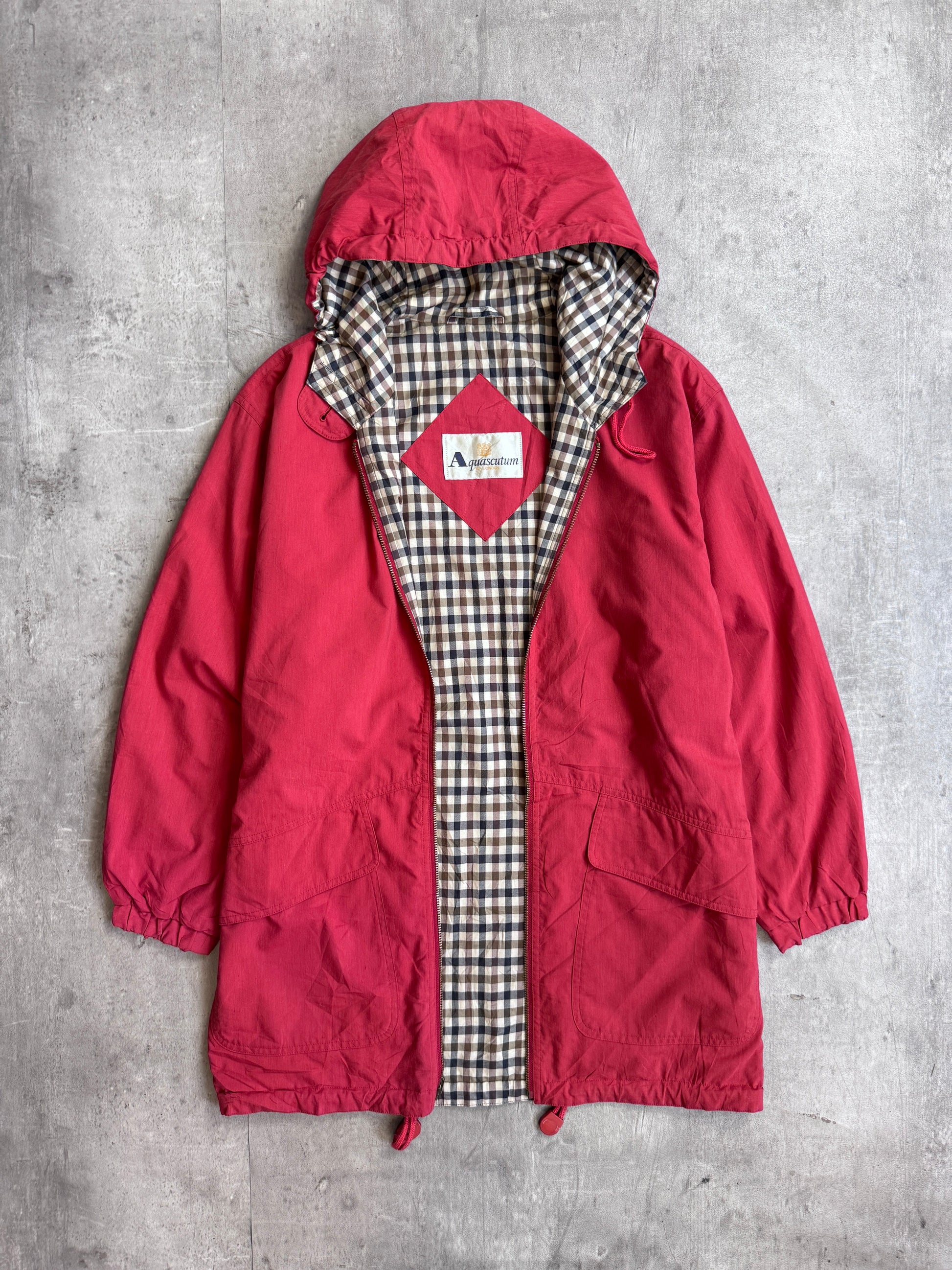 Aquascutum Check Red Hooded Parka Jacket