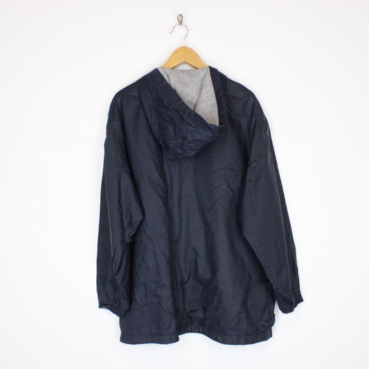 Barbour Navy and Blue Full Zip Waterproof JacketSize on label: Kid’s MediumOur recommended size: Kid’s Medium (9-10 Yrs)Pit to pit (inches): 17.5Length (inches): 22.5Condition: ExcellentRRP: £79All our products are pre-worn unless stated otherwise in the description. These items have been worn, resulting in signs of wear and use. If an item has any major flaws these will be stated above in the condition section.