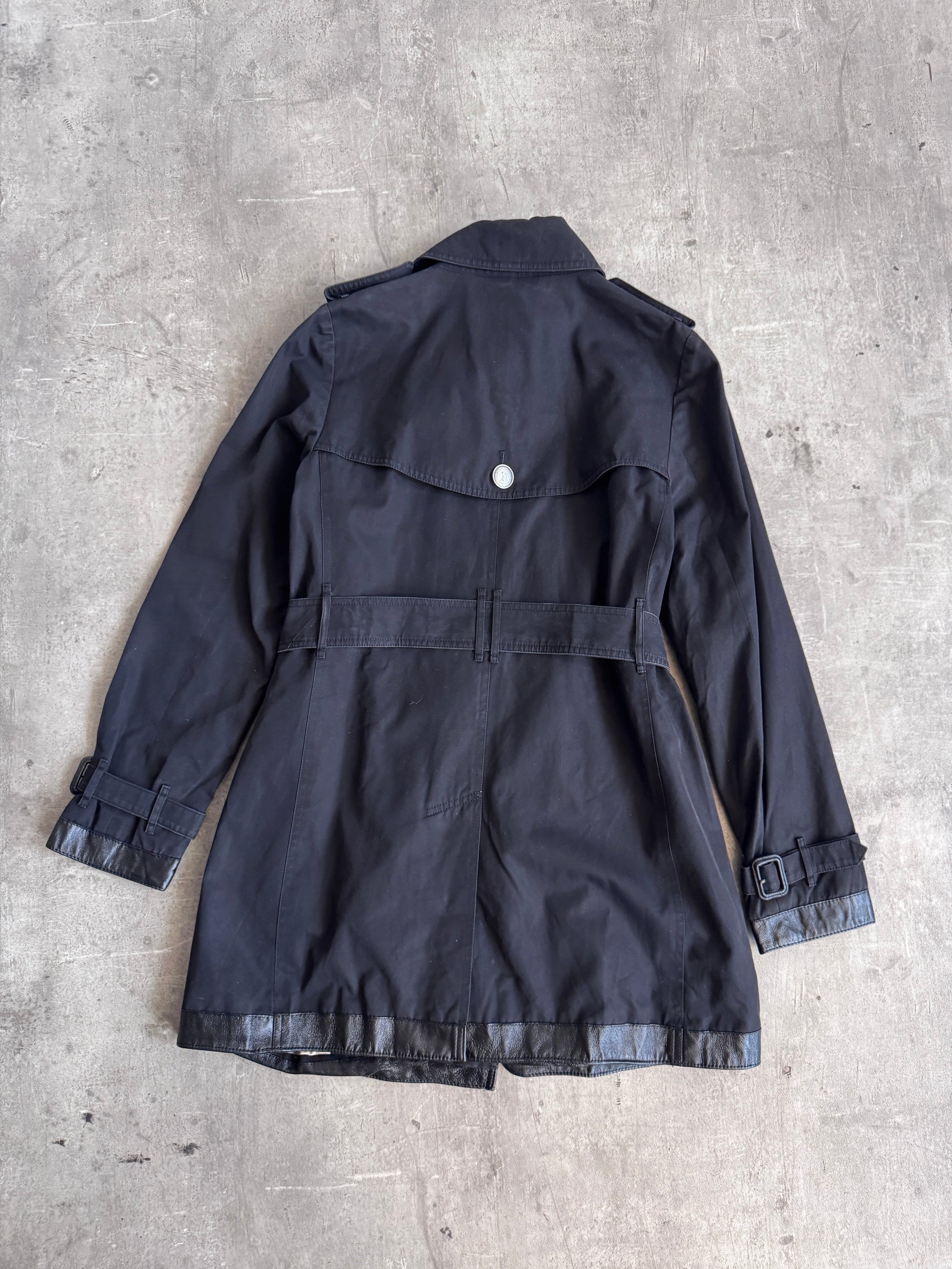 Burberry Nova Check Lined Black Leather Detailed Midi Trench