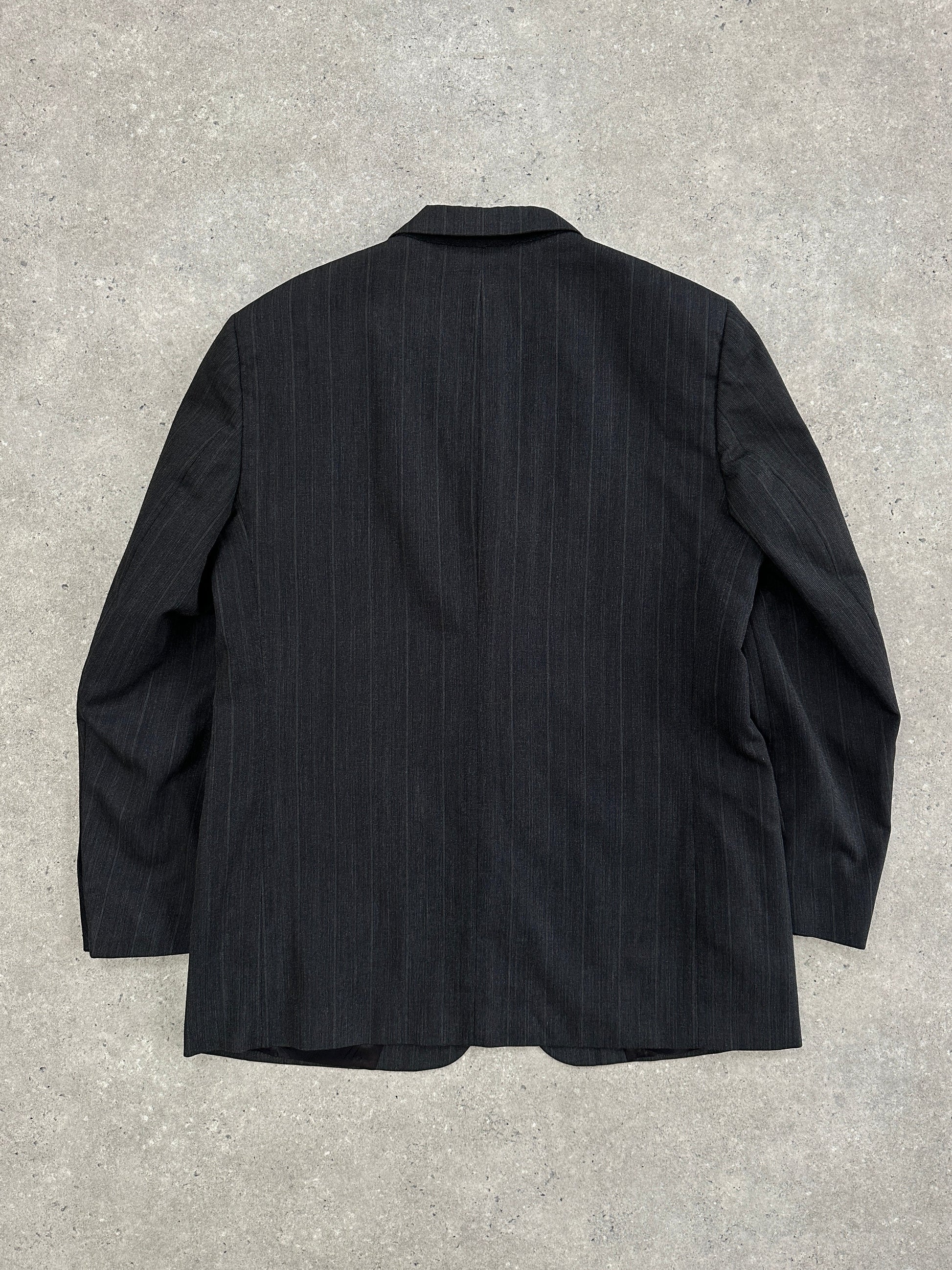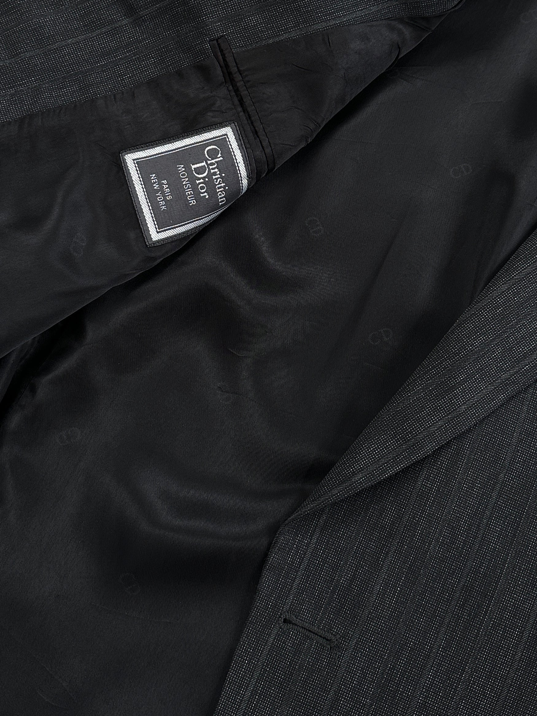 Christian Dior Monsieur 1990s blazer, tailored in the USA, made expressly for Belk. Cut in grey pinstripe wool with a two button silhouette.