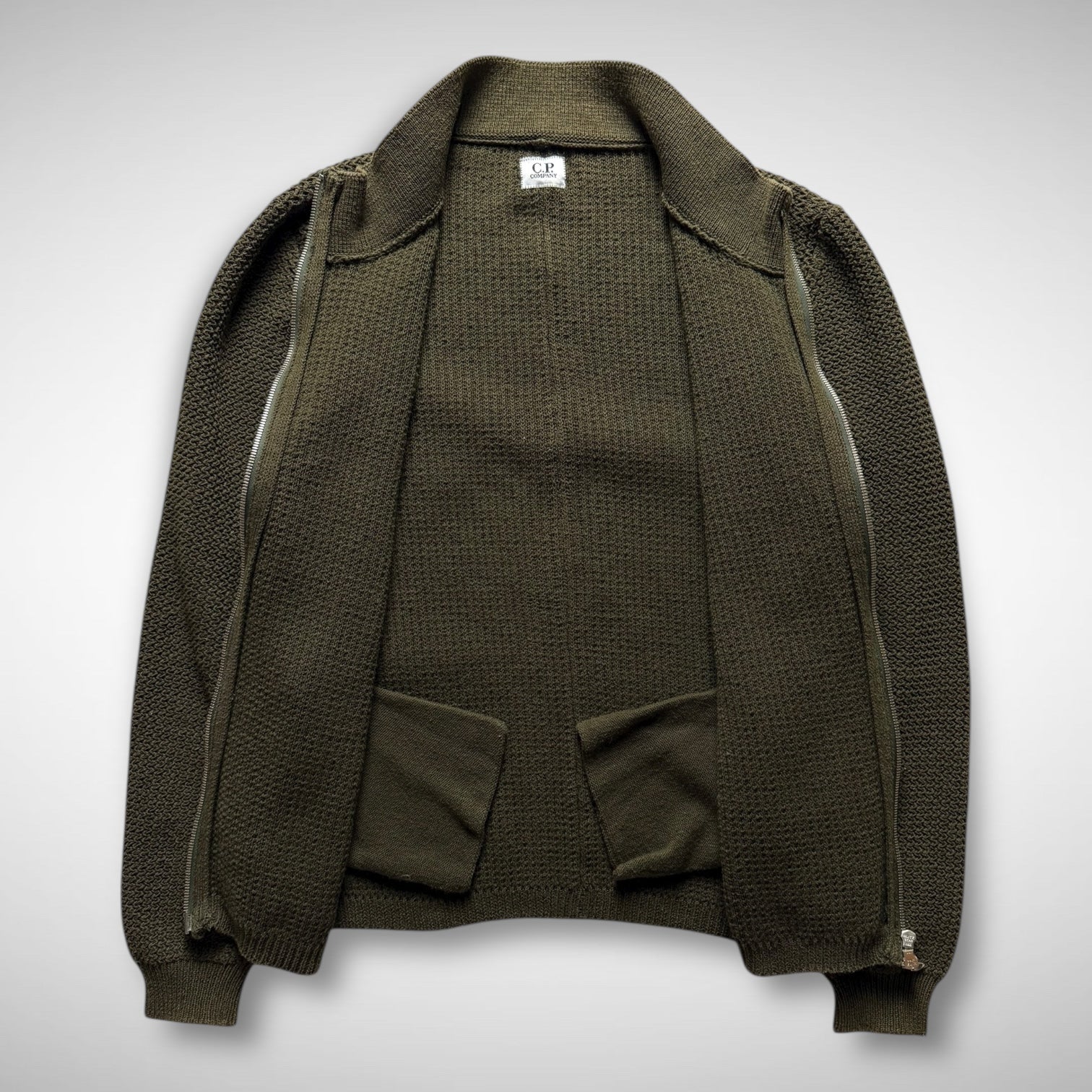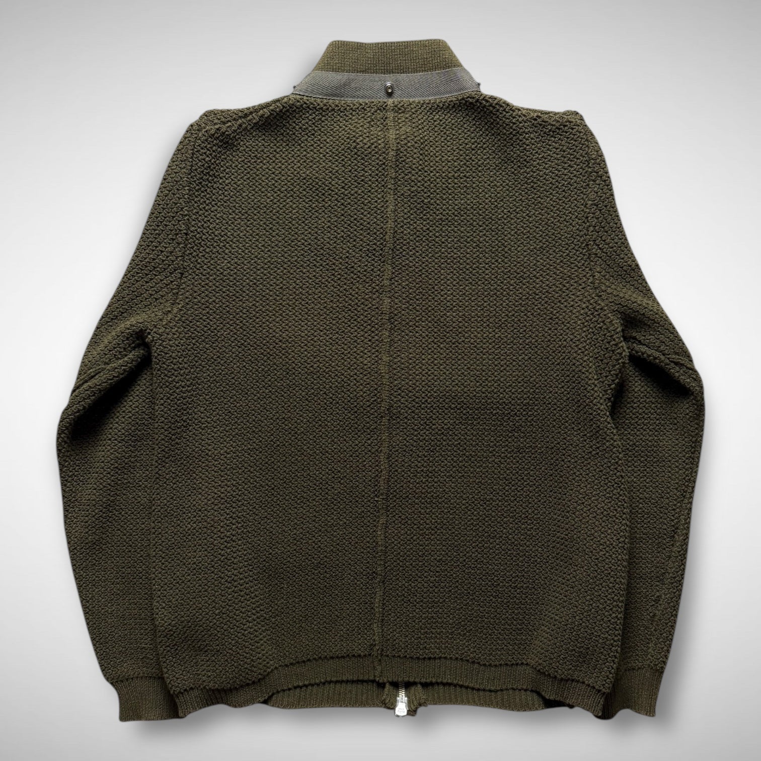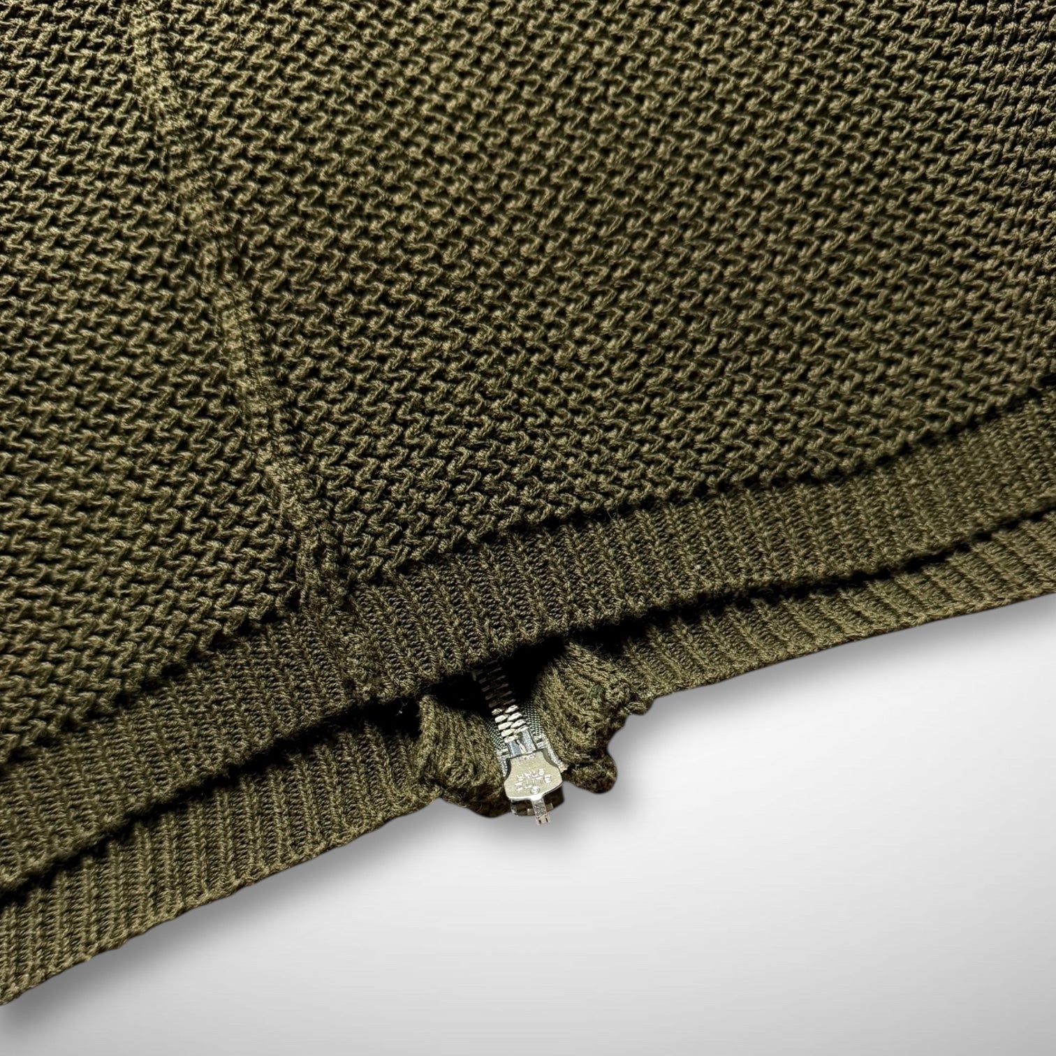 Featuring a textured waffle structure, ribbed cuffs and hem, dual-zip closure, and a reinforced collar with tonal tape and snap details.