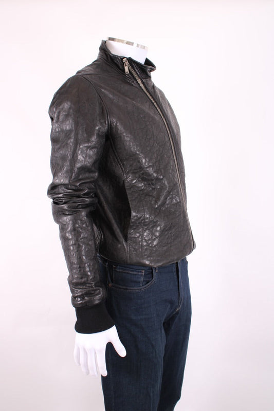 Black cropped jacket with silver over the shoulder with indigo stitched on detailing and tassles.