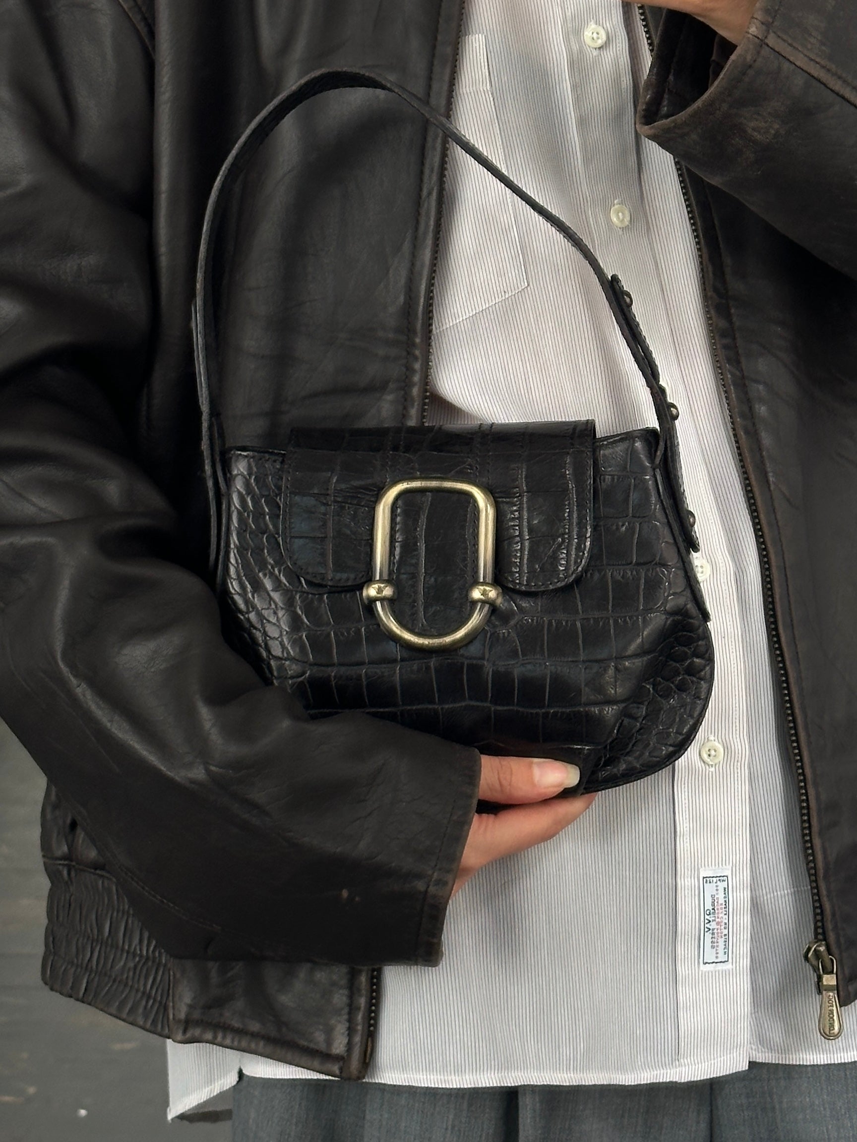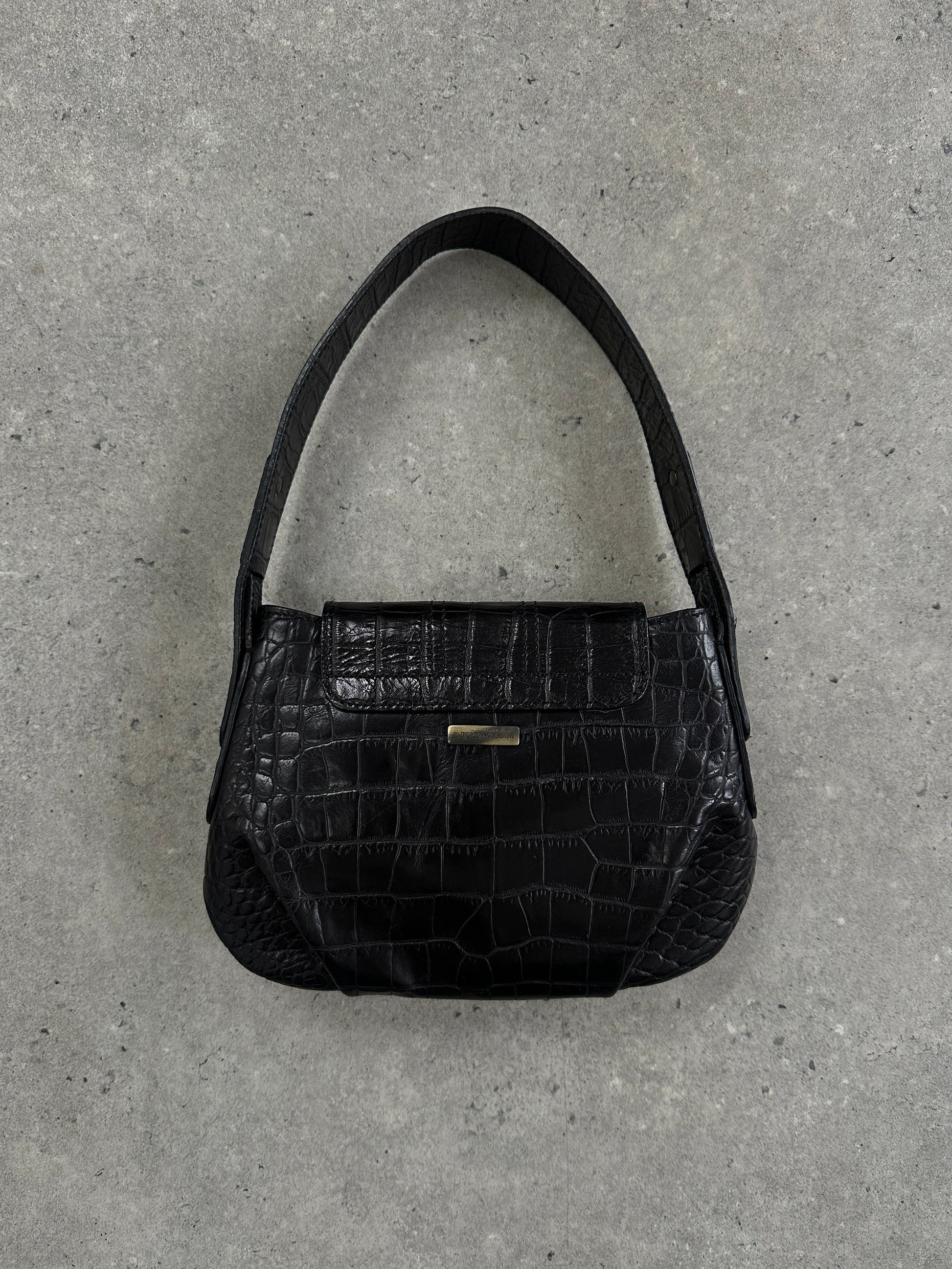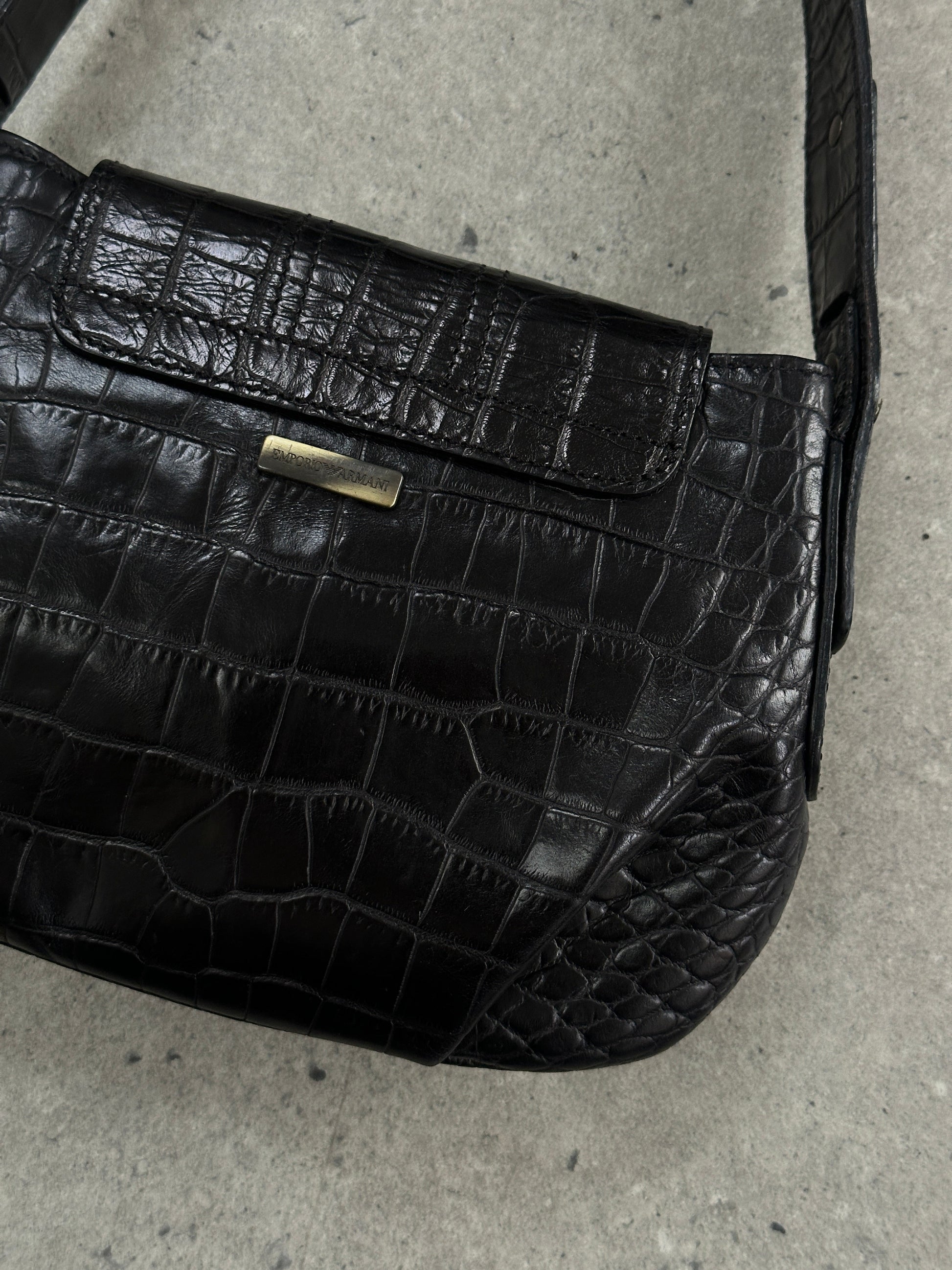 Emporio Armani 1990s Hardware Croc Leather Shoulder Bag